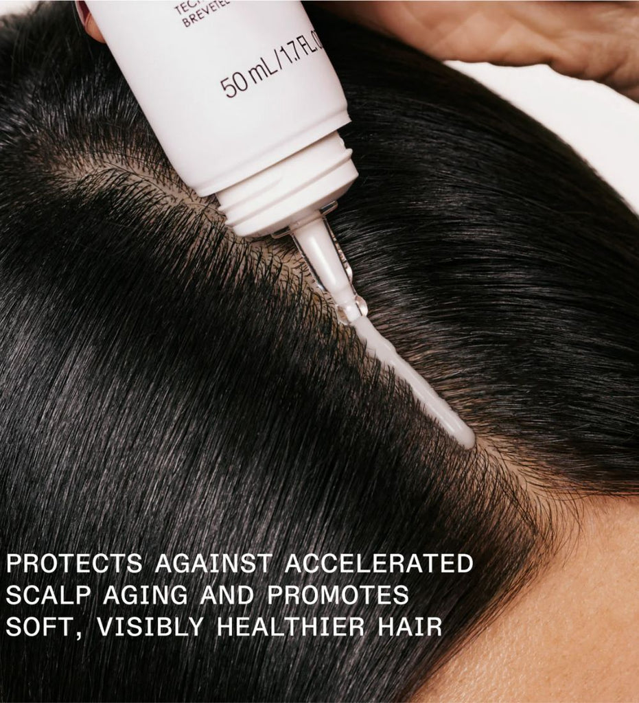 The scalp ages faster than all other skin and can directly affect hair health. This weightless leave-in scalp treatment immediately hydrates and soothes the scalp, protecting against accelerated scalp aging to promote smooth, shiny, healthy hair. For all scalp and hair types. Dermatologist tested & trichologist approved.