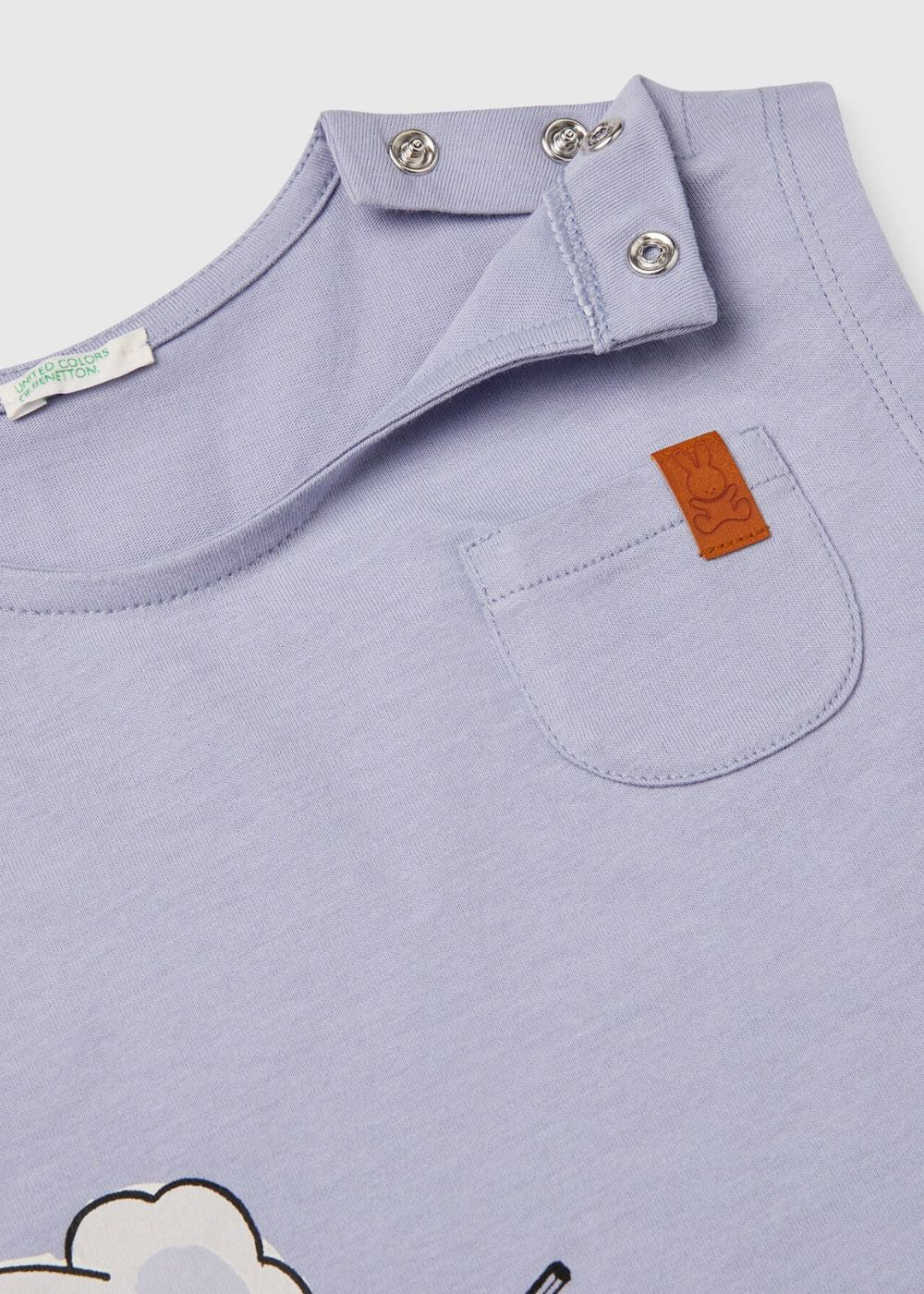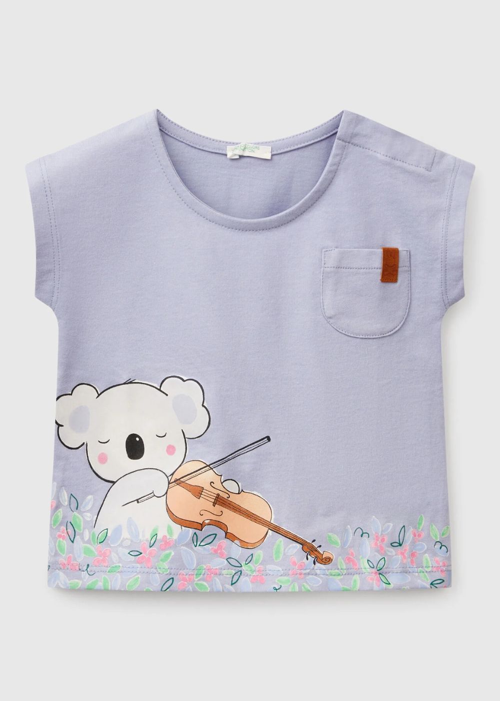 Crew neck short sleeve t-shirt in soft organic cotton. Boxy fit with left breast pocket, animal print with front slogan. Practical opening with hidden snap buttons on the shoulder. Item made with fabric containing at least 95% organic cotton.