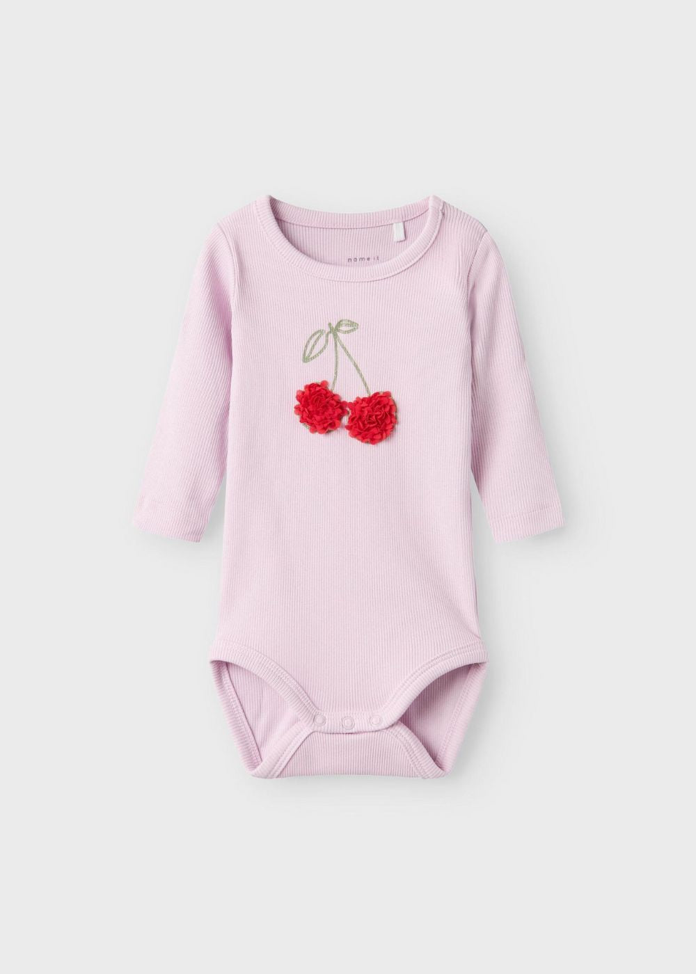 Elevate your child's wardrobe with this sophisticated Long Sleeve Bodysuit, crafted from soft rib knit fabric. Designed with long sleeves and a round neck, it ensures comfort and ease of movement. The press stud fastening on the shoulder allows for effortless dressing, while the delicate 3D detail adds a refined touch. Perfect for year-round wear, this bodysuit combines practicality with elegant design.