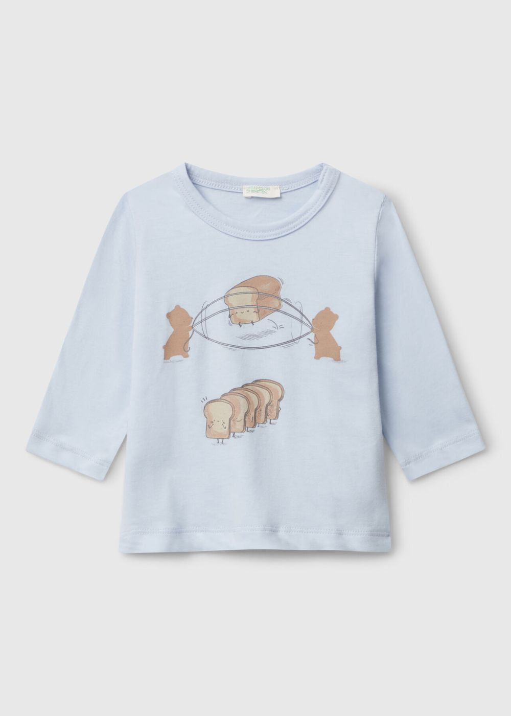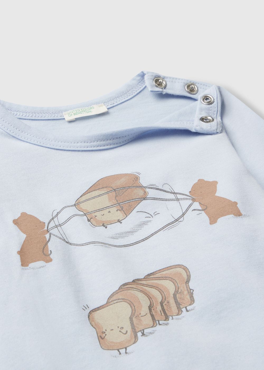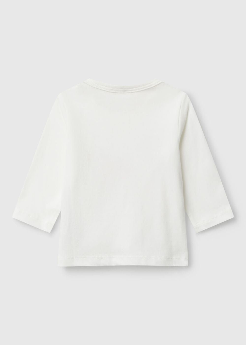 Long sleeve crew neck t-shirt with cute print on the front. Opening with snap buttons on the left shoulder. This garment is made from 100% OCS certified organic cotton. CERTIFIED BY ICEA - ICEA - TX - 611. Products certified according to the Organic Content Standard (OCS) contain independently verified organic content at every stage of the supply chain, from the recycling to the finished product.