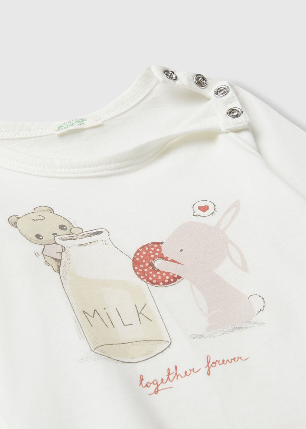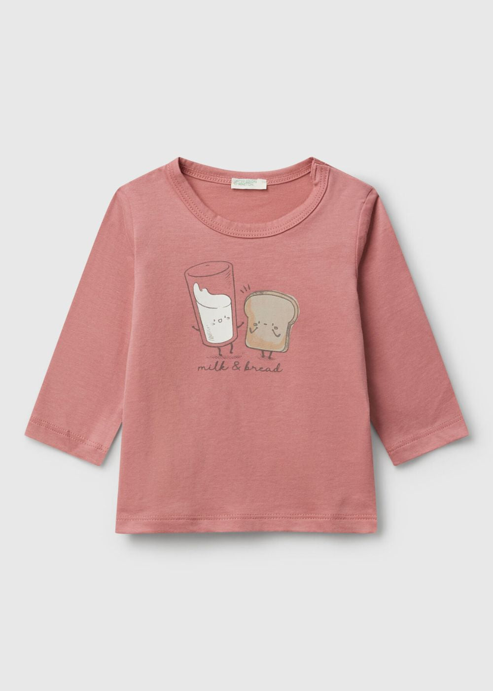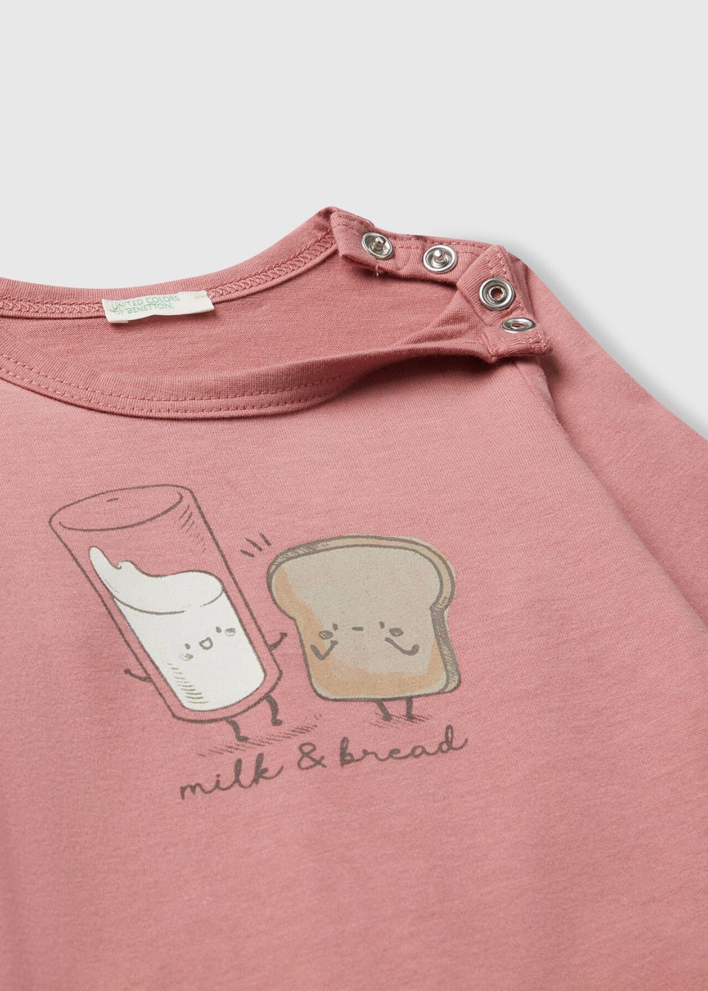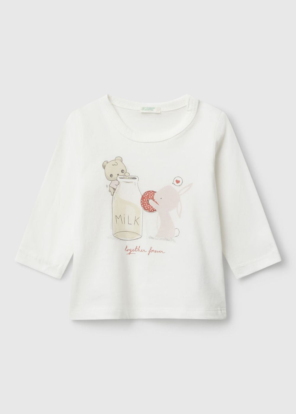 Long sleeve crew neck t-shirt with cute print on the front. Opening with snap buttons on the left shoulder. This garment is made from 100% OCS certified organic cotton. CERTIFIED BY ICEA - ICEA - TX - 611. Products certified according to the Organic Content Standard (OCS) contain independently verified organic content at every stage of the supply chain, from the recycling to the finished product.