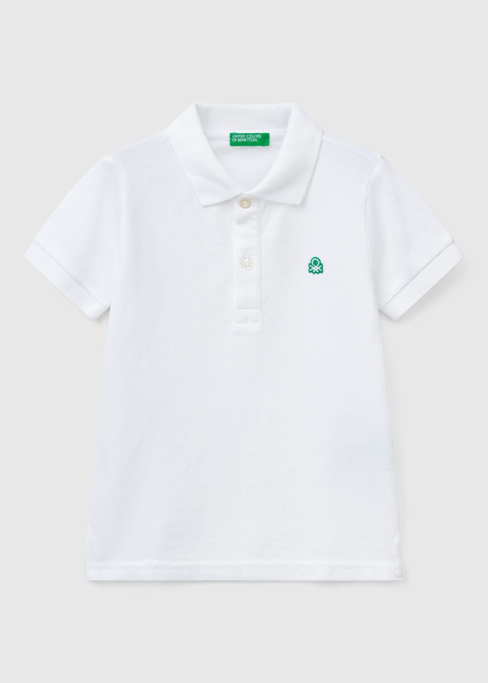Short sleeve polo shirt in pure organic cotton with embroidered logo at left breast. Classic collar with partial opening with buttons, slits at the bottom. Classic cut and the utmost comfort. Item made with material containing at least 95% organic cotton.