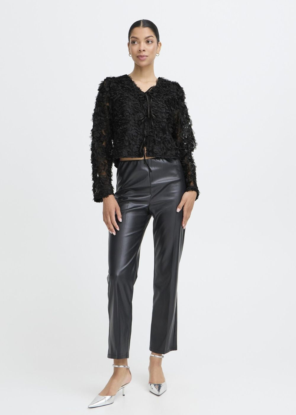 The BY Rosalinda Jacket by B.Young offers a sophisticated blend of versatility and style. Featuring a flattering V-neck and elegant long semi-sheer sleeves, its luxurious 3D mesh fabric adds subtle texture and depth. Wear it as a chic jacket or a refined top, perfectly paired with tailored trousers, a sleek dress, or casual jeans for a polished yet effortless look.