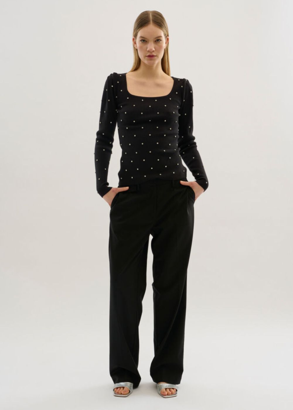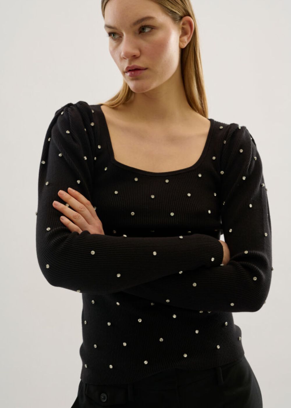 Indulge in luxury with the KS DIAMANTE TOP. Boasting a straight fit and hip length, this top offers a sophisticated and exclusive look. Its impeccable fit will enhance your silhouette, making you feel elegant and tasteful. Elevate your wardrobe with this timeless piece.