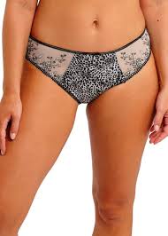 Lindsey Briefs by Fantasie Lingerie. Classic shape ladies briefs in a trendy leopard print made from soft to handle fabric. With tulle inserts to the front leg decorated with delicate Austrian designed embroidery for a fashionable look.