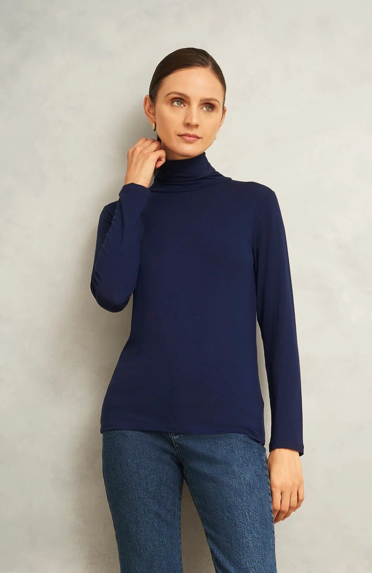 Hobbs Mischa Roll Neck Long Sleeve Top Navy