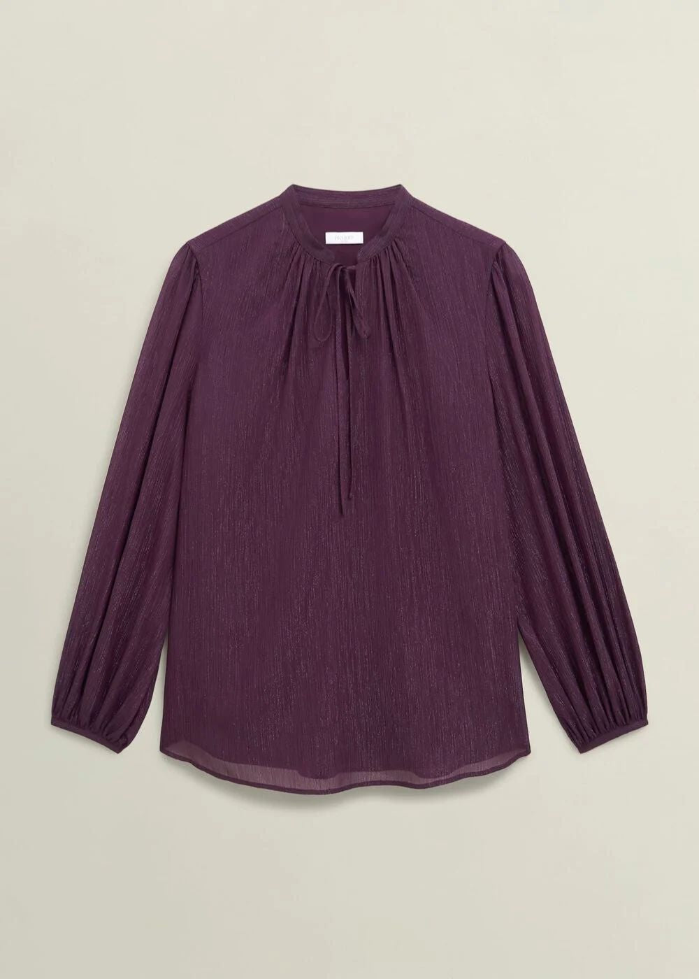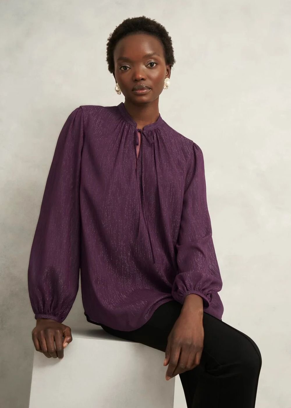 Fusing jewel tones with a touch of metallic, the Vivien top lends itself as the ultimate desk-to-dinner blouse this season, and next.