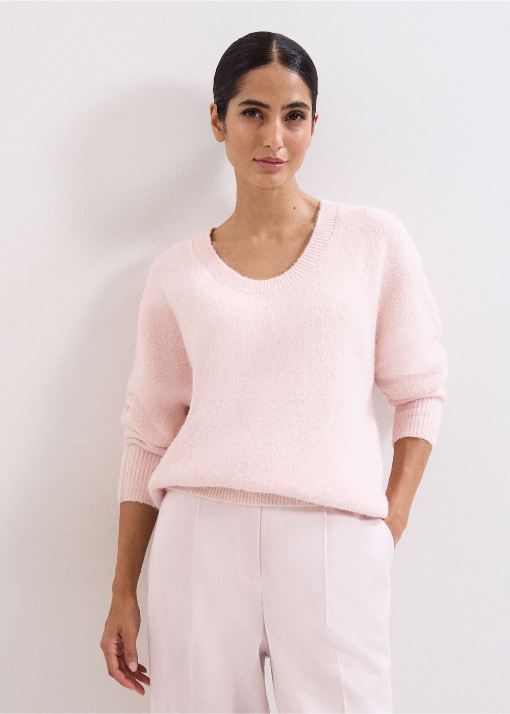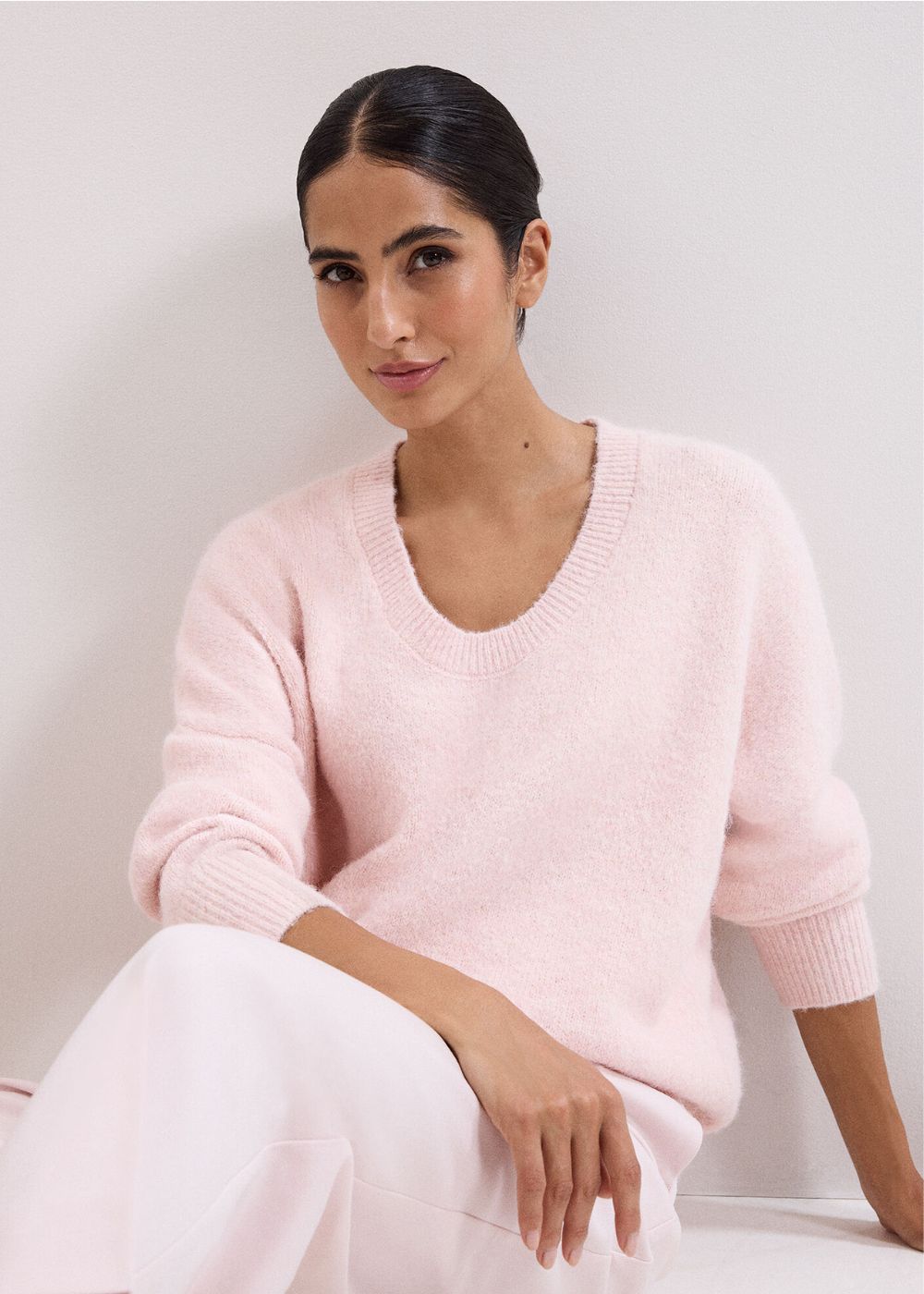 Our pink wool-blend jumper will stand the test of time in your wardrobe. In a gorgeous baby pink that will pair effortlessly with everything it features a feminine scoop neck for a modern look. In a warm wool blend that creates a supersoft feel against the skin it’s the perfect staple to add to your knitwear collection this season.
