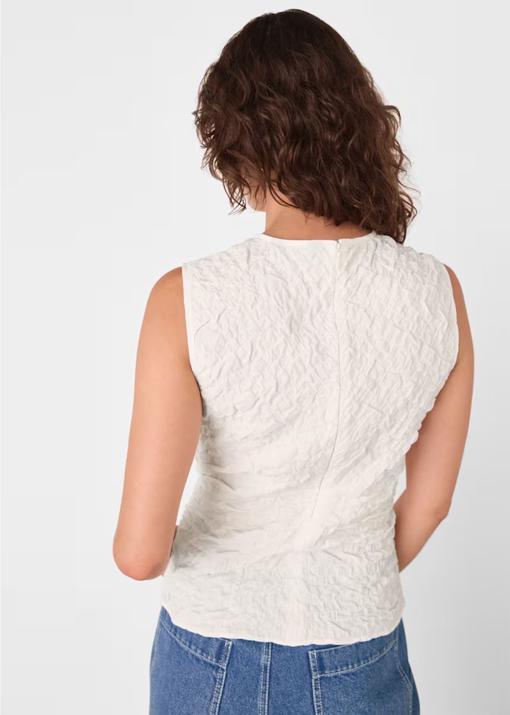 Equally suited for office days and weekend celebrations, our Cotton Textured Tank adds instant polish to any look. It’s crafted in a soft ivory shade with a tactile textured finish, complemented with a sleeveless cut, a round neckline and a back zip fastening for a clean silhouette.