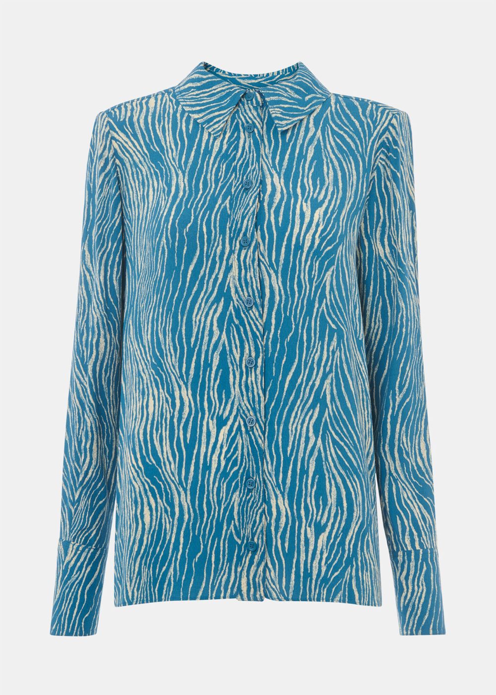 Bring vibrant elegance to your summer looks with our Zebra Button Through Shirt. It’s cut to a regular fit with a dropped hem and printed with a striking zebra pattern, coloured in bold shades of blue and white for a contemporary look.