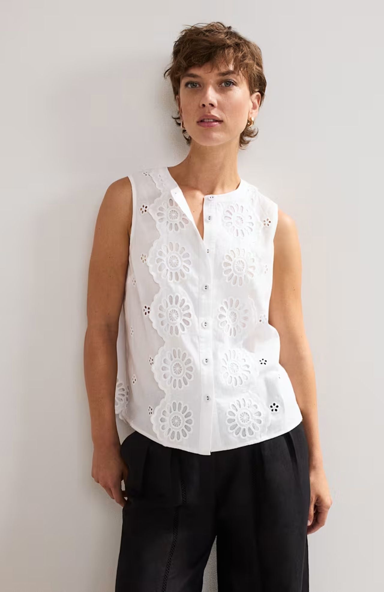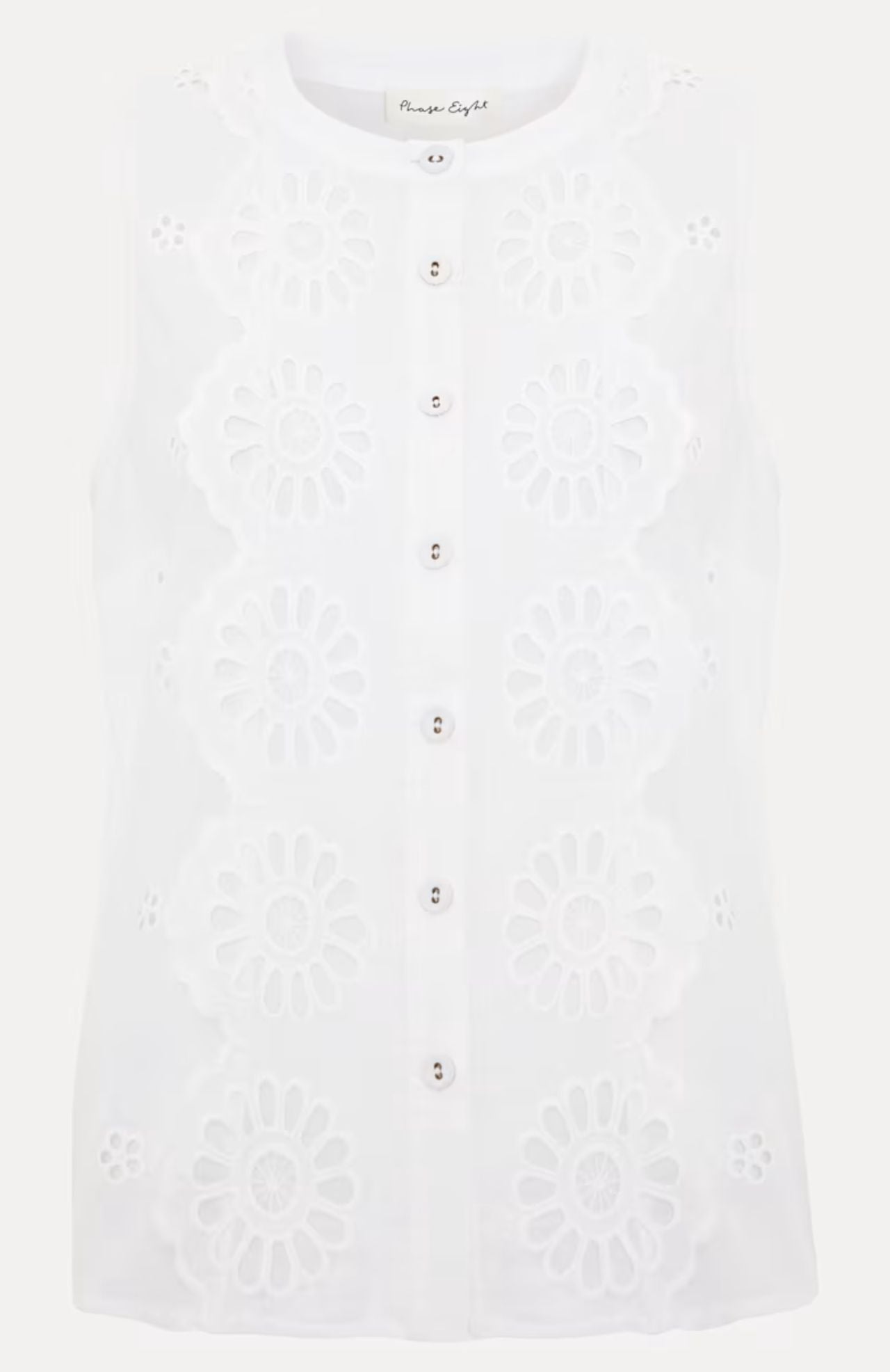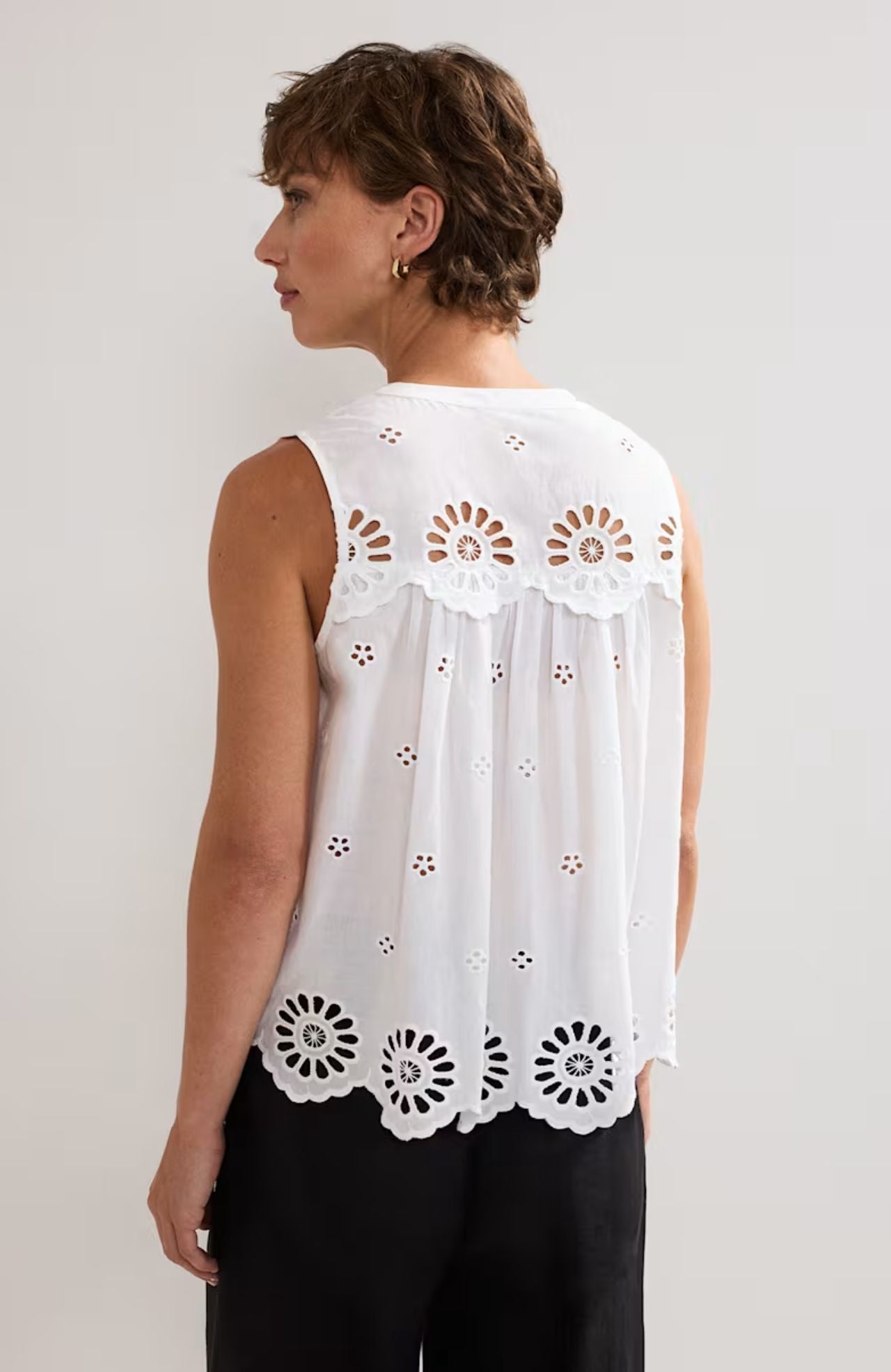 Our Tilda top is the perfect warm-weather staple. Decorated with intricate broderie detailing to create a stylish feminine look, it's an effortless piece to pair with your favourite separates for day or night.