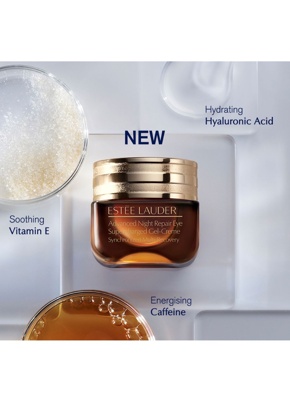 - Advanced Night Repair Eye Supercharged Gel-Creme Synchronized Multi-Recovery, full-size (15ml) and deluxe travel size (5ml): Reveals a smoother, more well-rested look. Dark circles look brighter. Lines look diminished. Lightweight and fast-absorbing, with plumping, Hyaluronic Acid