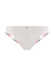 The Fantasie Lillia FL104070 Thong in white with delicate floral lace giving a feminine touch.At the front leg and a spot mesh front panel lined for modesty and comfort.Crafted from soft handle, clean cut fabric, it provides a smooth finish with a second skin feel and no visible pant lines.To complete the perfect look pair with the matching bra.