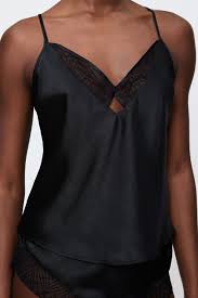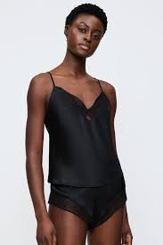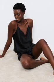 This pyjama set showcases super-soft fabric that delicately drapes around your figure, creating an effortlessly elegant silhouette. We designed this versatile camisole set to transition seamlessly from sleepwear to loungewear, or as an extra layer under clothes throughout your day. The thoughtfully crafted pieces offer comfort and style in equal measure. Camisole and shorts set for versatile wear, soft-touch fabric that drapes gracefully around your figure. Flattering deep-back camisole with delicate lace inserts, low-coverage shorts for optimal comfort crafted in sustainably certified satin.