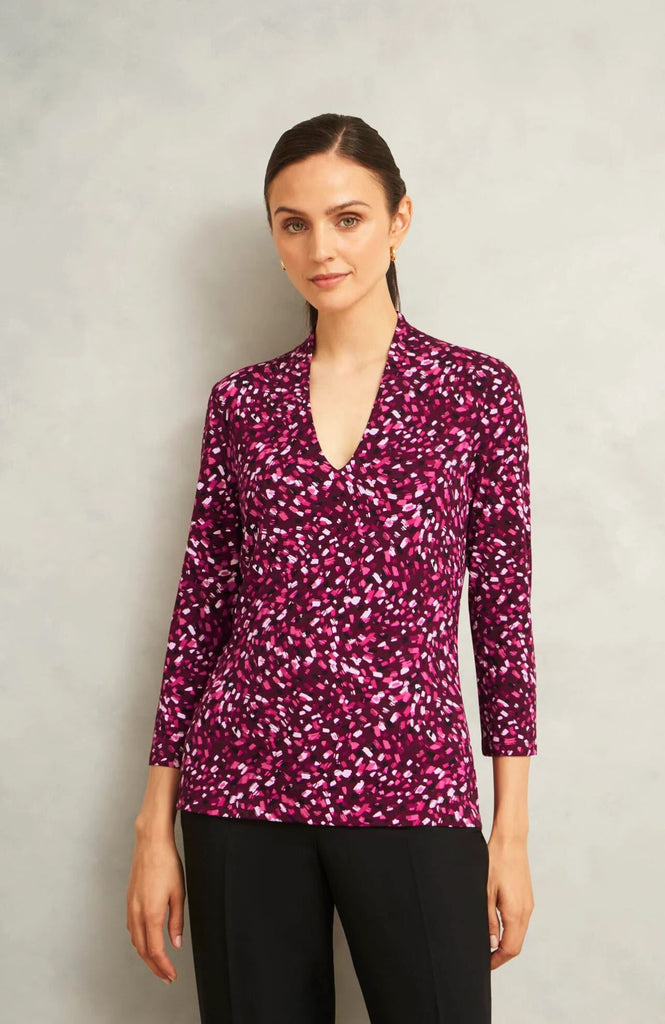 Hobbs Burgundy Aimee Printed V Neck 3/4 Sleeve Top