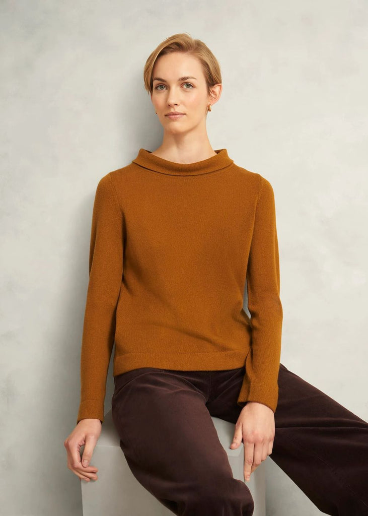 Hobbs Brown Audrey Cashmere Blend Roll Neck Jumper