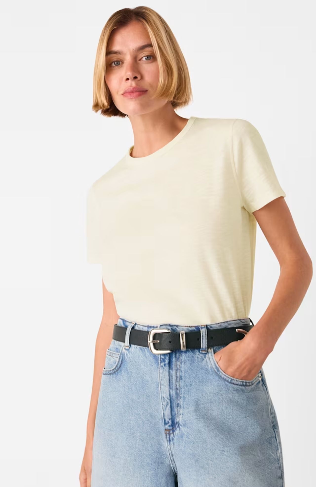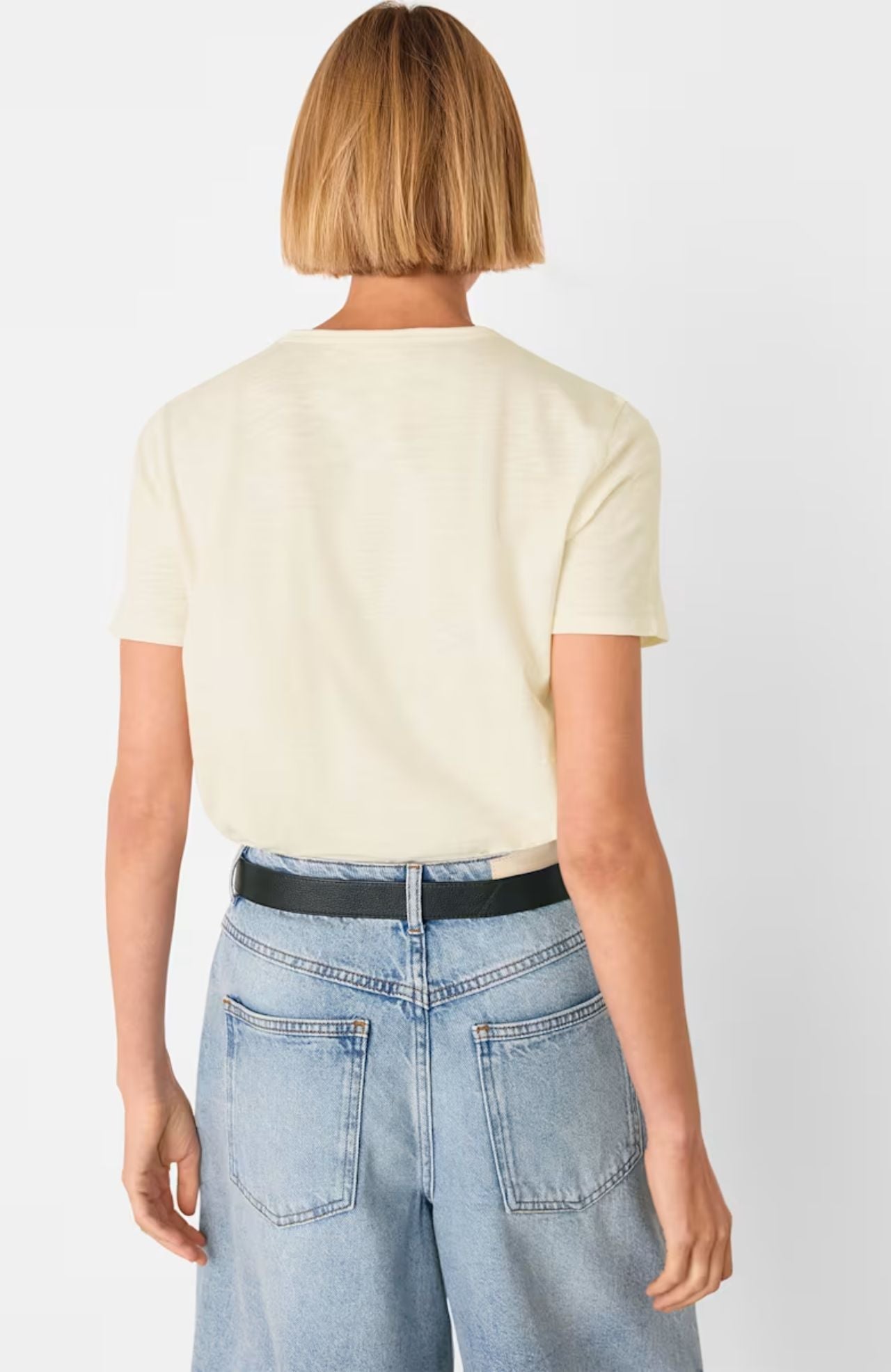 You can never have too many T-shirts, and our latest style will become a wardrobe staple you keep returning to. It's cut from soft cotton in a soft cream shade, with a relaxed silhouette making it comfortable and versatile. Try pairing it with everything from printed skirts to signature jeans. We'll be elevating ours with statement earrings and heeled sandals.