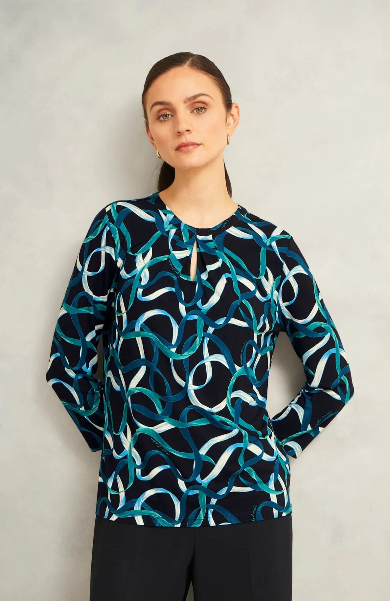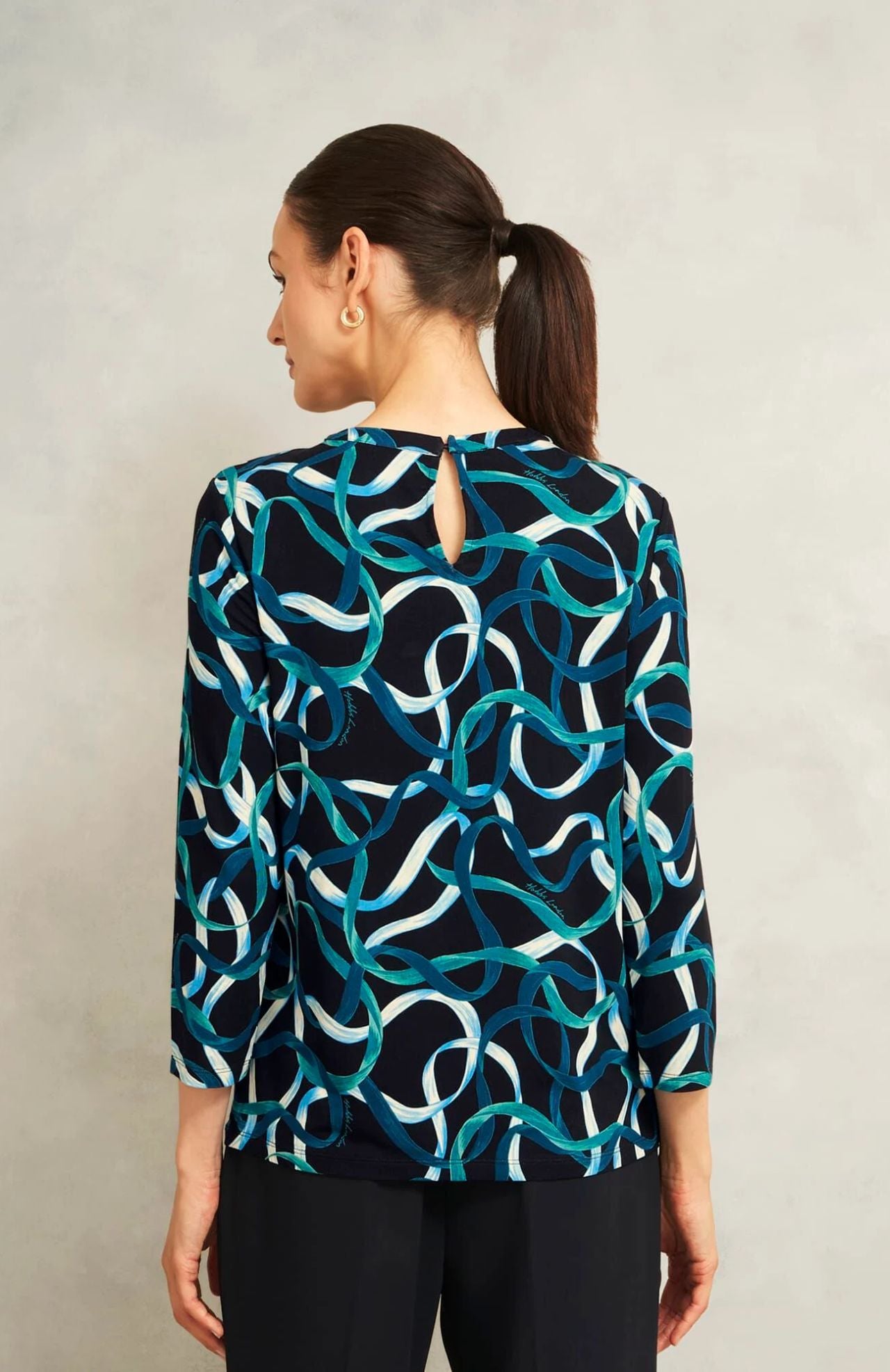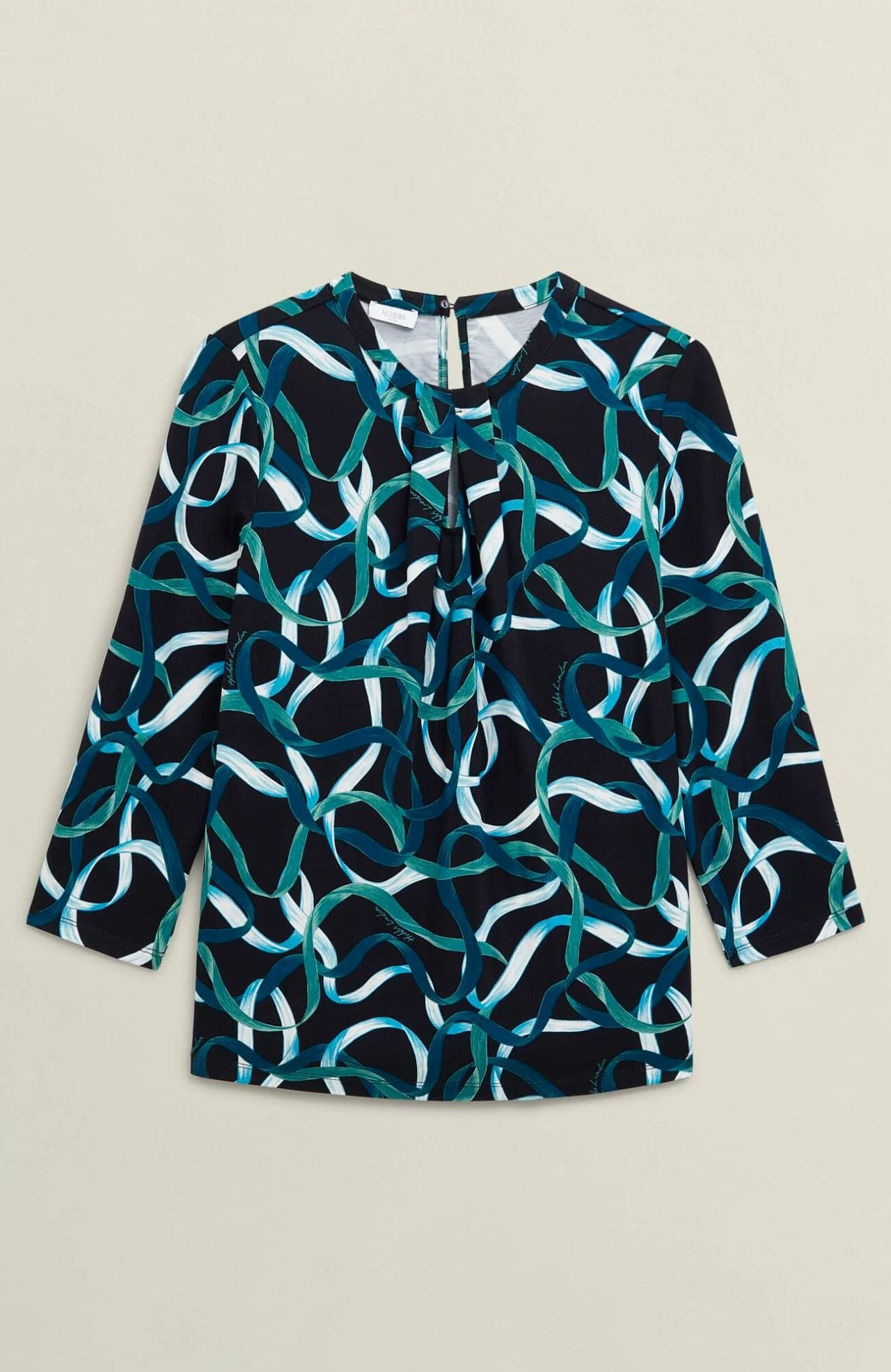 Hobbs Julia Ribbon Printed Key Hole 3/4 Sleeve Blue