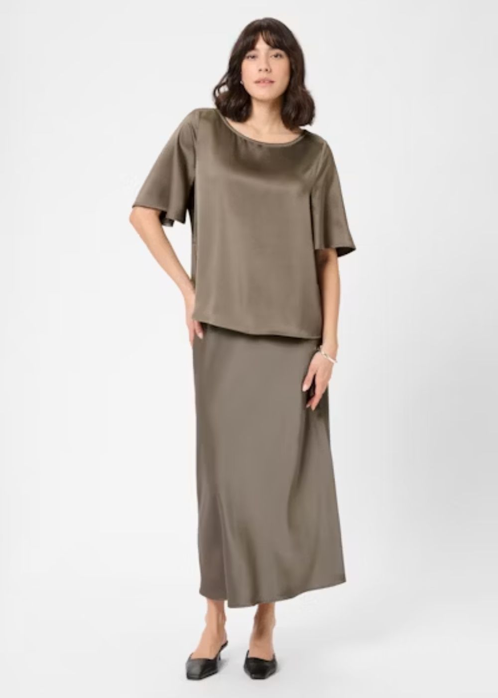 This women's maxi skirt features a straight silhouette, elastic waist for comfort, and a modern, fluid drape. Ideal for versatile styling, this wardrobe staple offers effortless elegance and easy all-day wear.