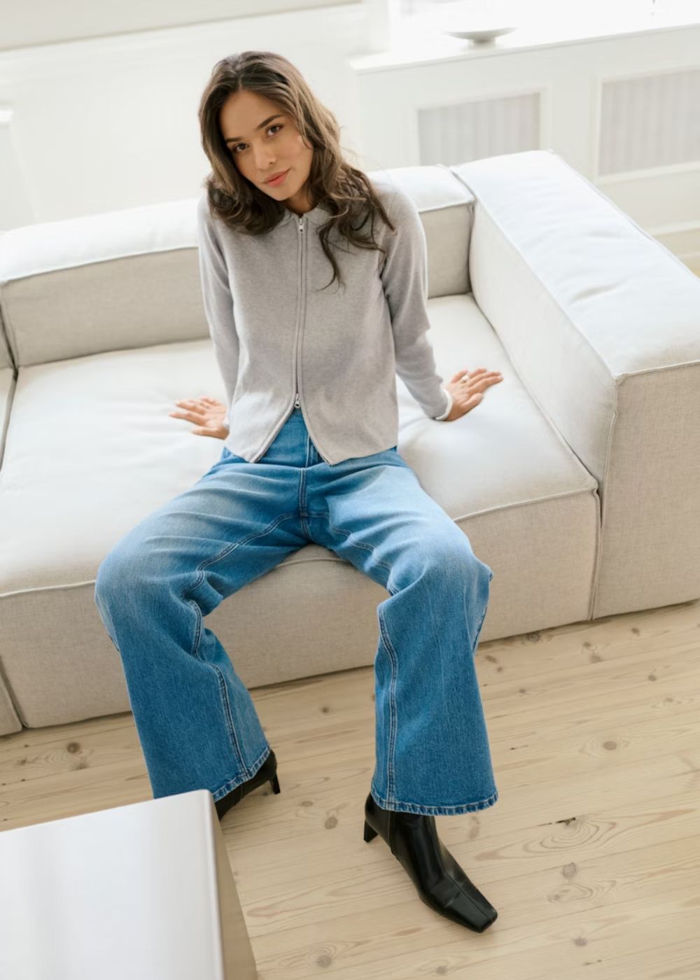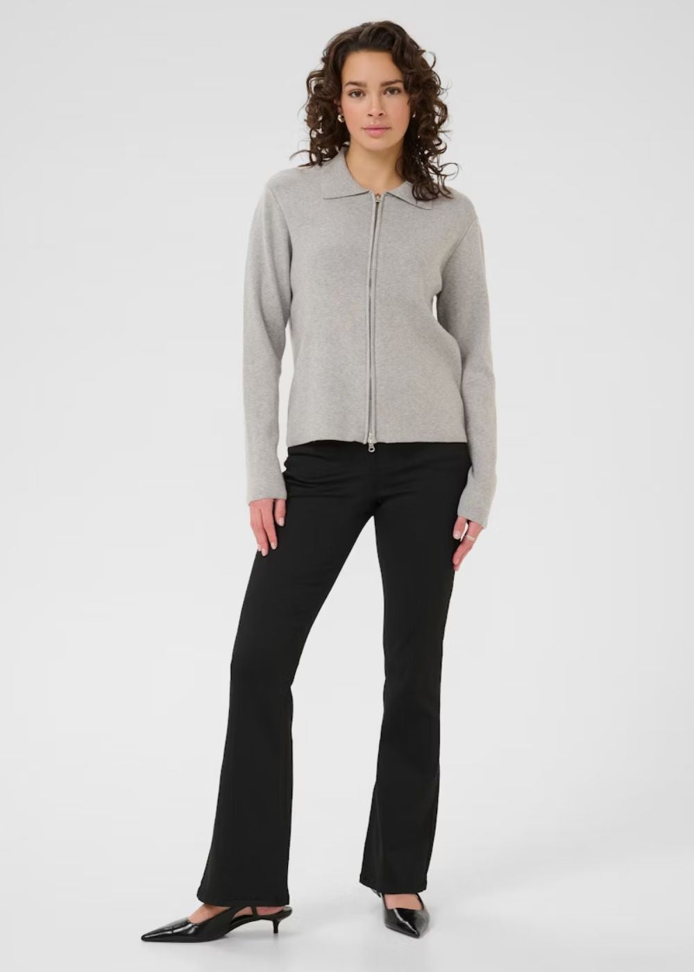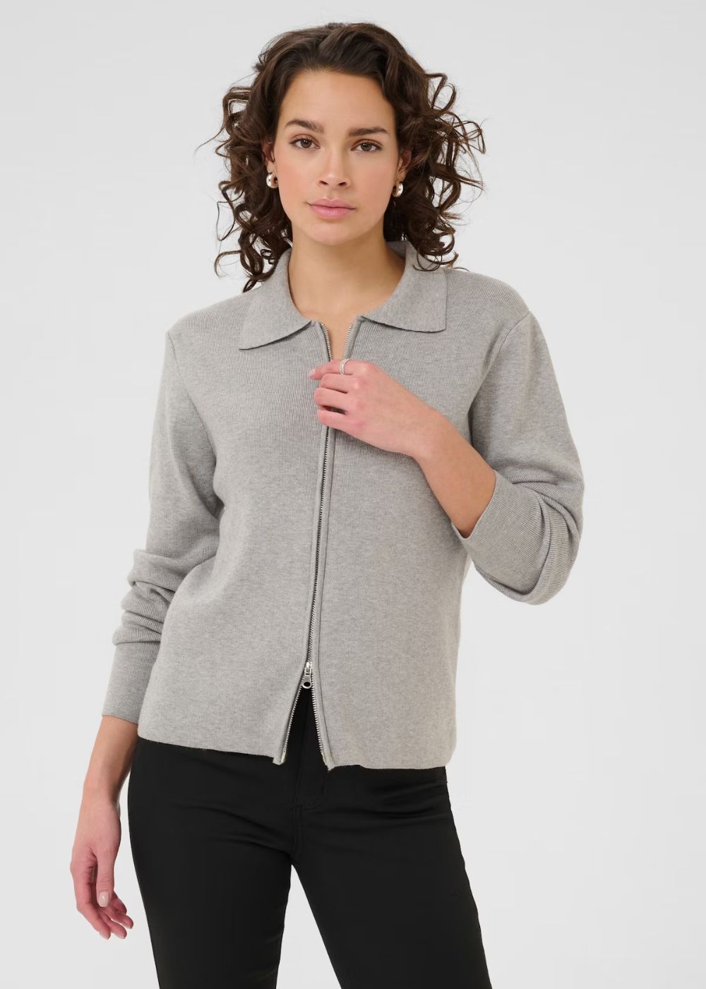 This women's zip-up cardigan features a regular fit, classic collar, and full-length sleeves for versatile style. The ribbed texture and soft knit add everyday comfort and modern appeal for any wardrobe.