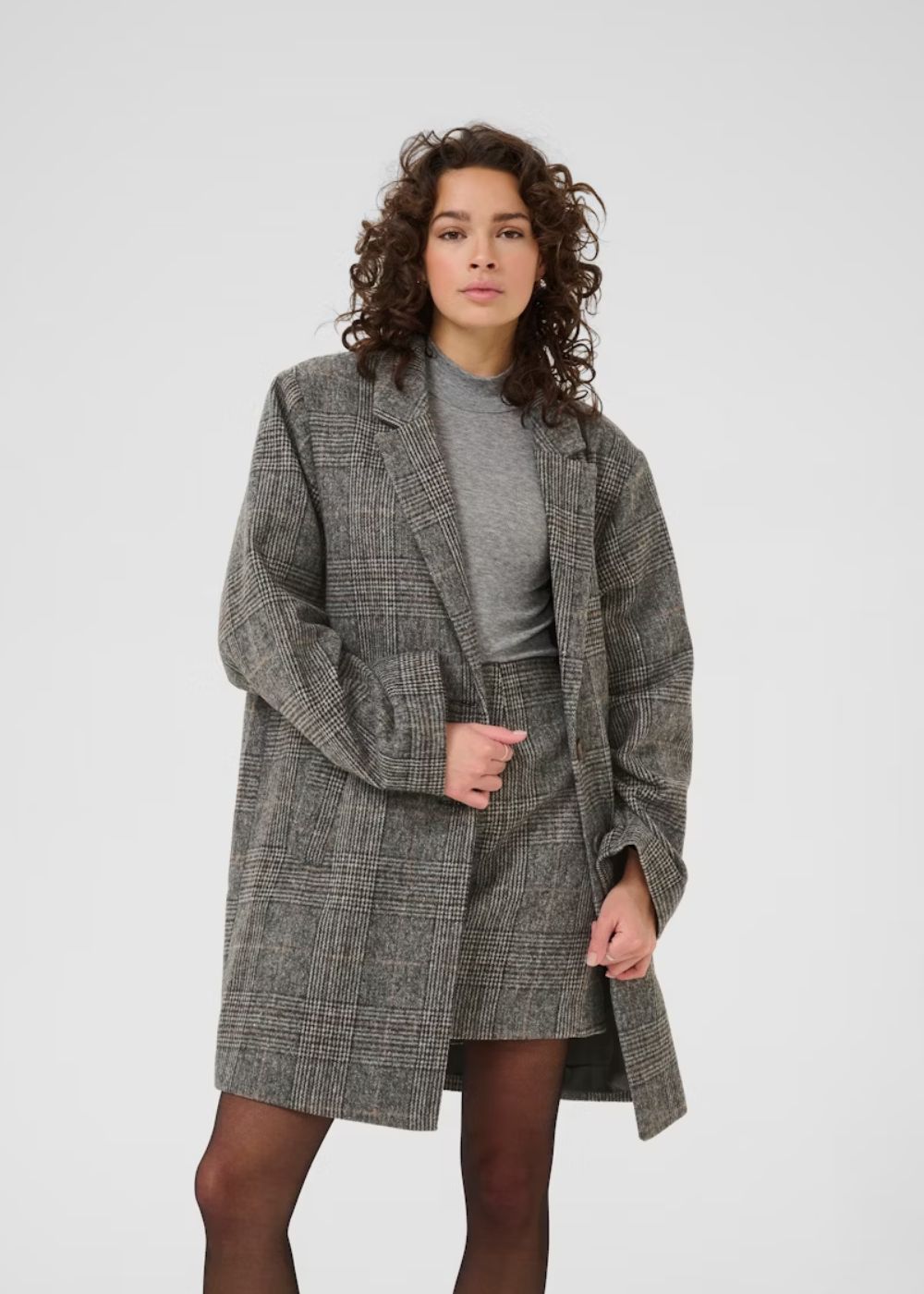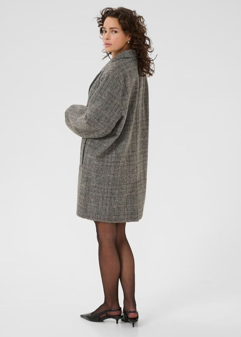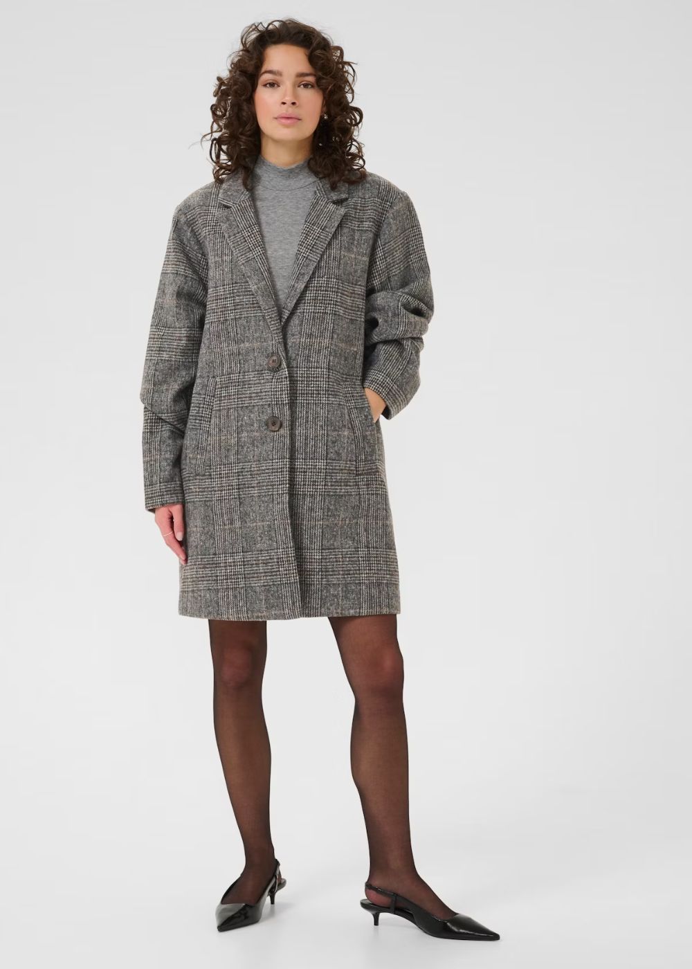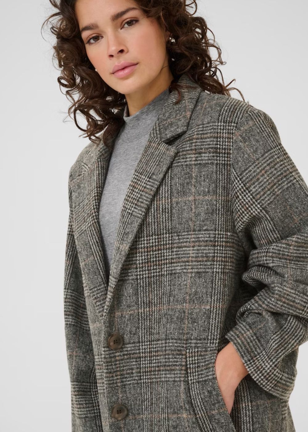 Blazer coat women offers a relaxed fit with dropped shoulders, classic lapel collar, button closure, and practical side pockets for everyday comfort.