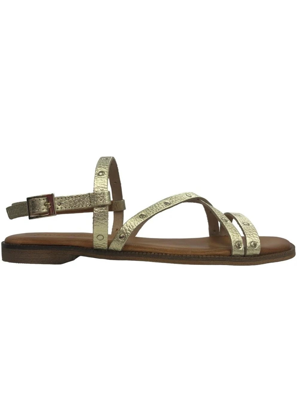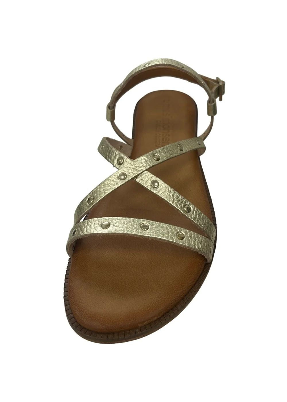 Elevate your style in the Lizette Leather Sandal from Tim & Simonsen. Crafted with calfskin and lambskin, the memory foam footbed ensures all-day comfort. The feminine design is accentuated by thin straps and studs, making it the perfect choice for any occasion. Available in platinum gold.
