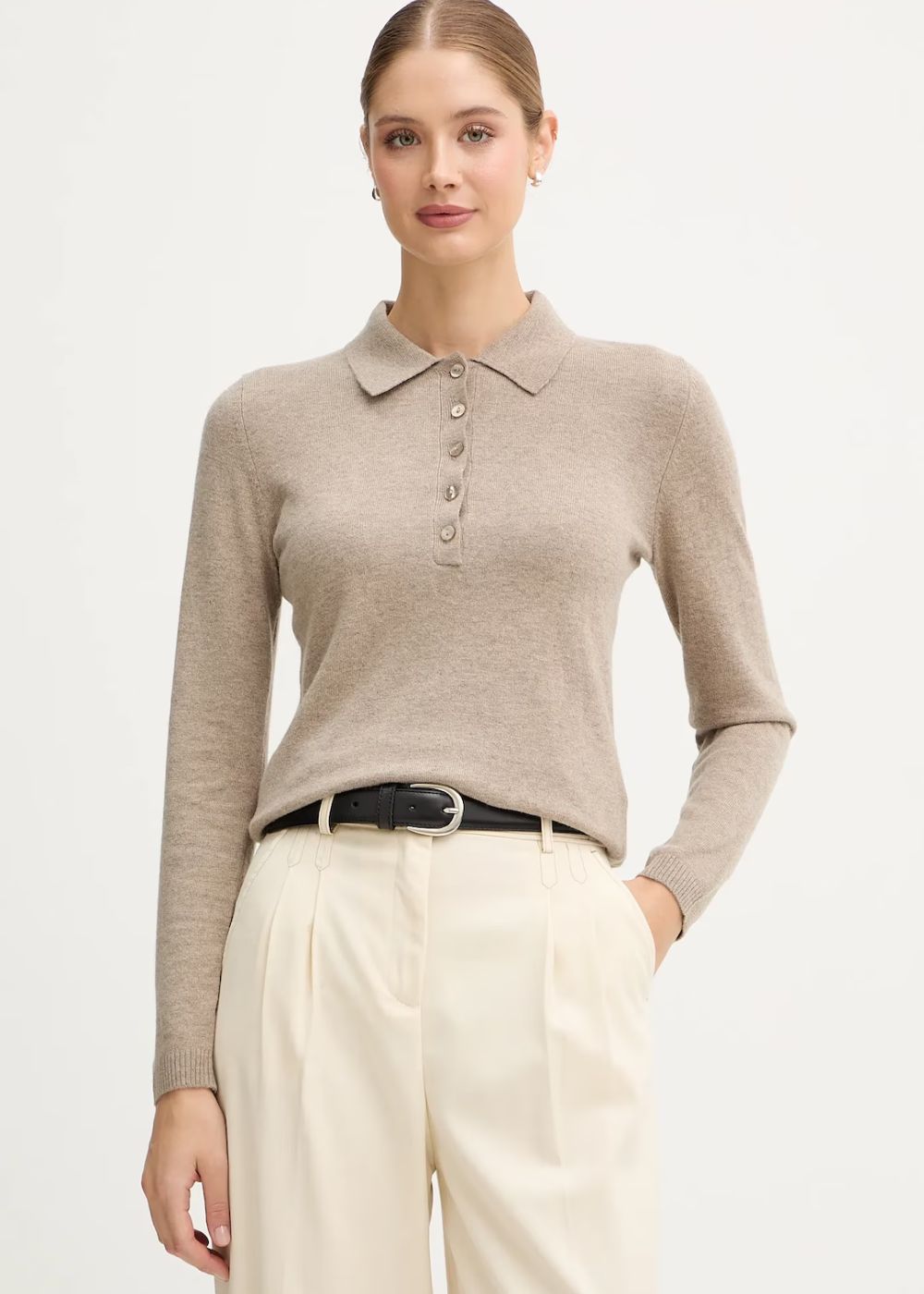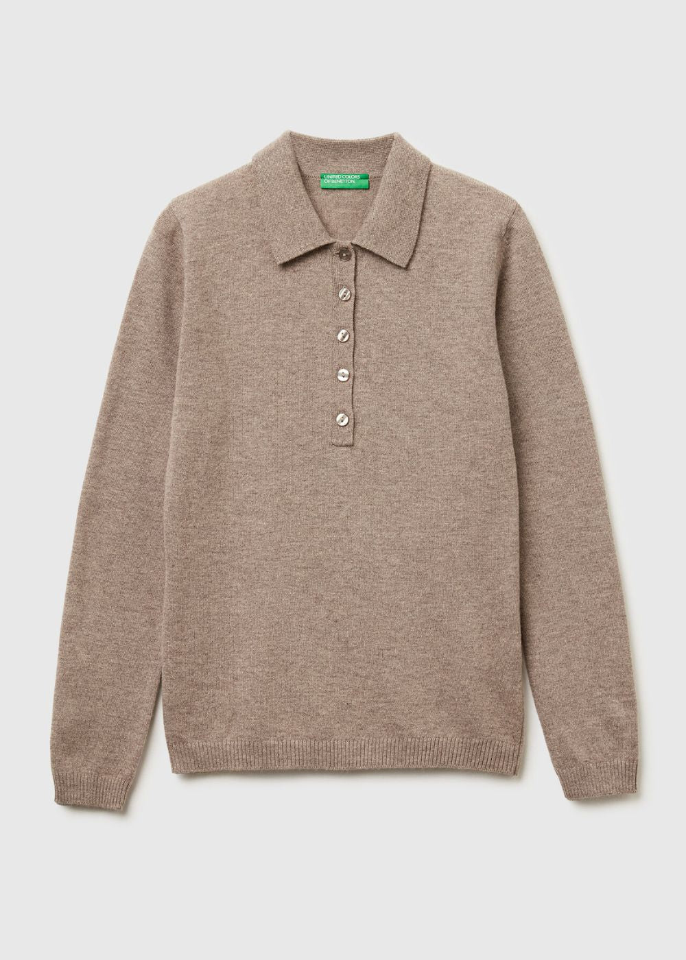Long sleeve polo in soft wool, viscose and cashmere blend knit. Regular fit, classic collar and partial opening with front buttons. The utmost comfort for everyday wear.