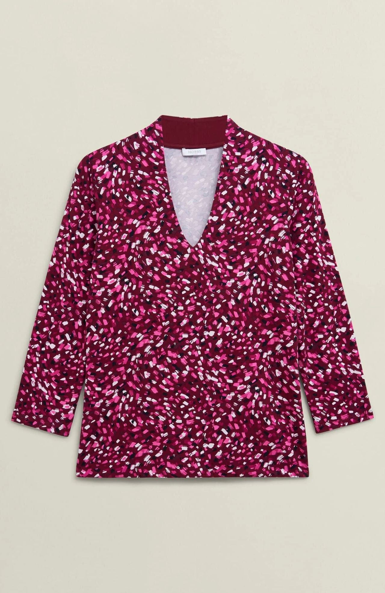 Hobbs Burgundy Aimee Printed V Neck 3/4 Sleeve Top