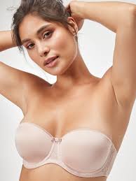 Moulded strapless T-shirt bra crafted from a feminine elastic lace