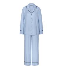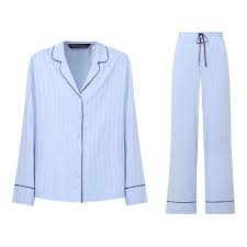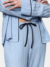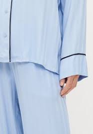 This pyjama set brings together classic elegance with modern comfort in perfect harmony. A timeless button-down top pairs beautifully with wide-cuffed trousers, creating a sophisticated silhouette that transforms your evening routine into something special. You'll want to go to bed earlier just to curl up in these luxurious pyjamas that feel as good as they look.