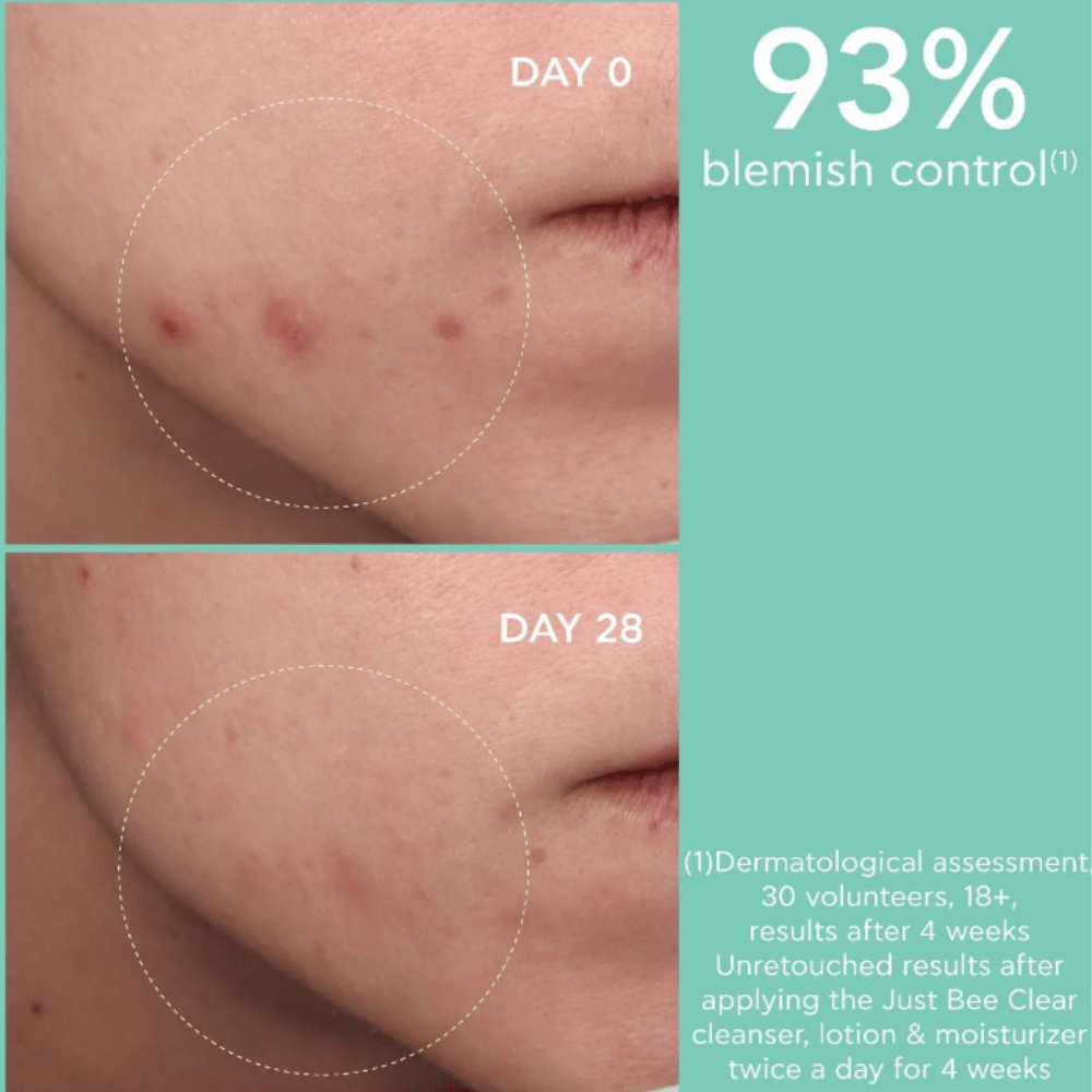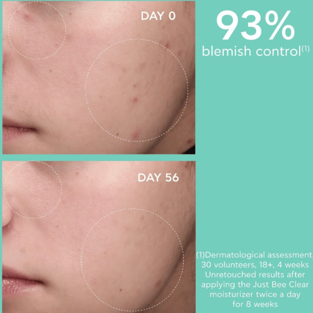 For even better results, apply the moisturizer after JUST BEE CLEAR Purifying Cleanser Gel and Pore Minimizing Purifying Lotion, following our complete 3-step routine for a healthy, blemish-free appearance.
