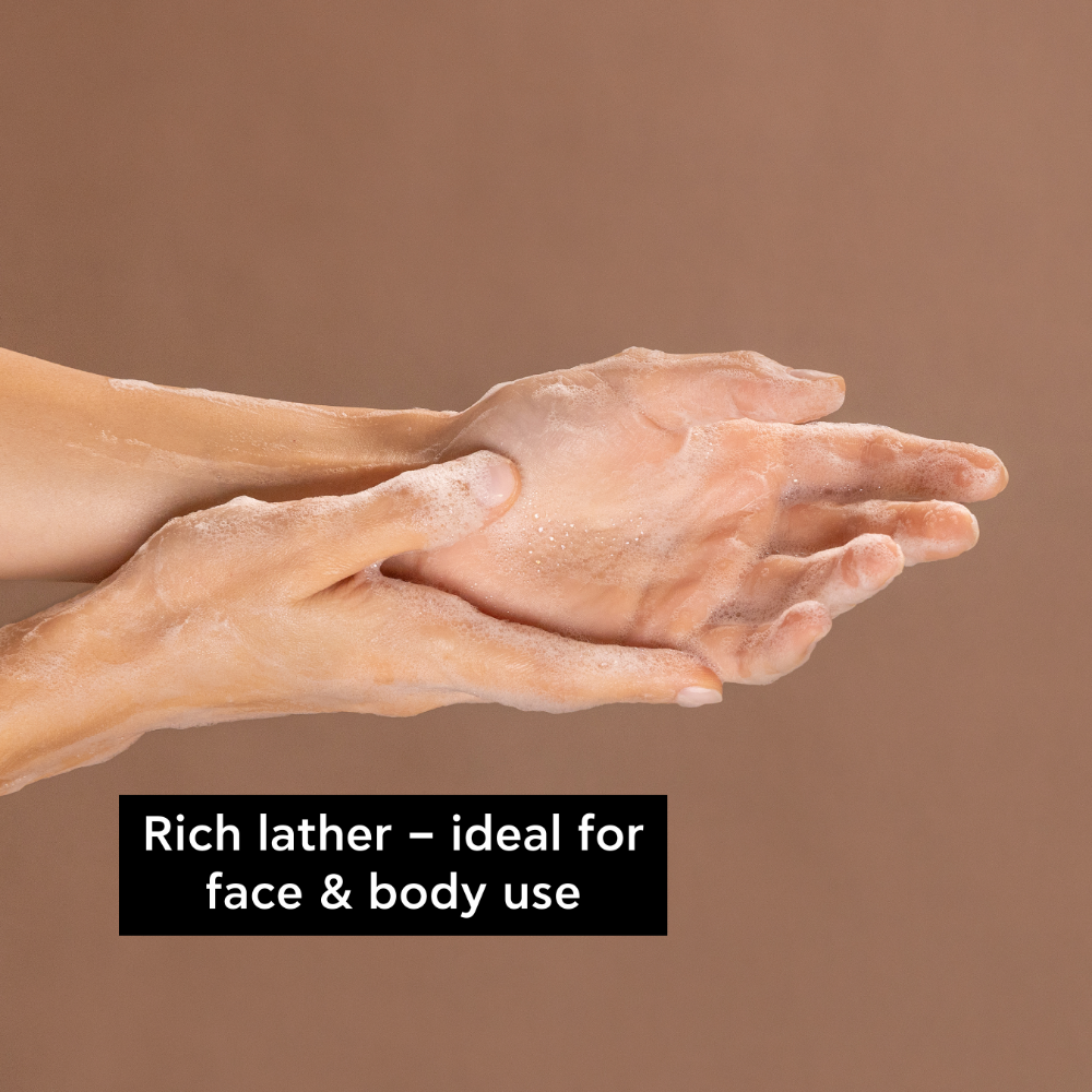 Apply on damp face or/and body skin with gentle movements to make lather. Rinse thoroughly.
