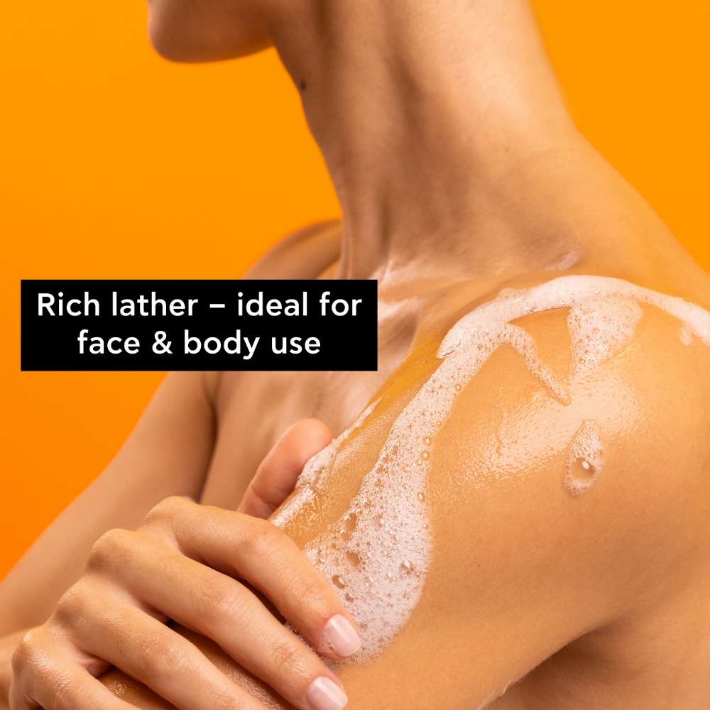 Apply on damp face or/and body skin with gentle movements to make lather. Rinse thoroughly.