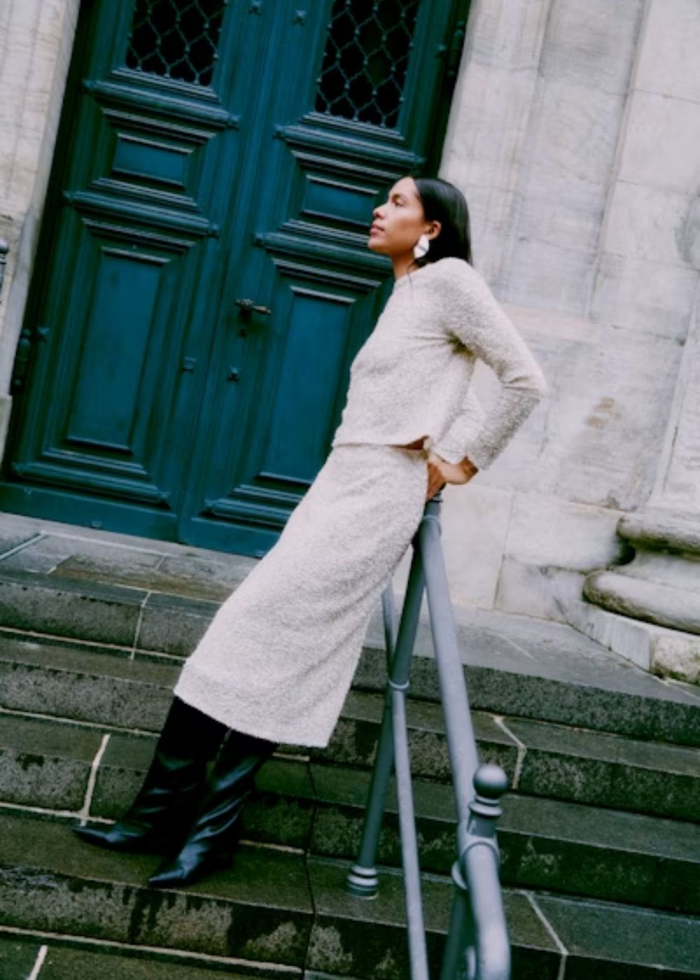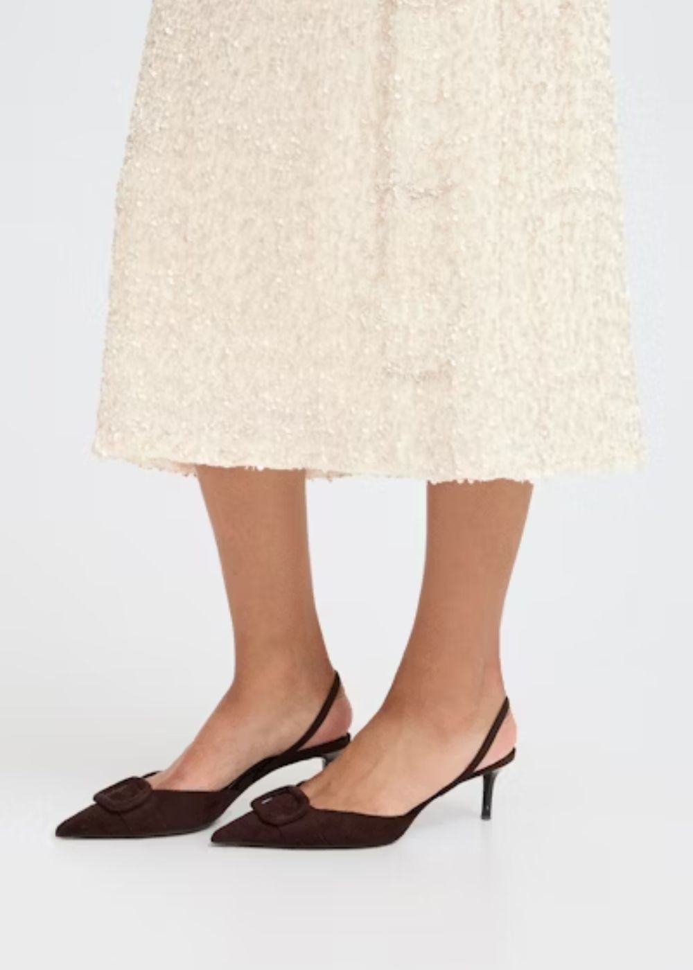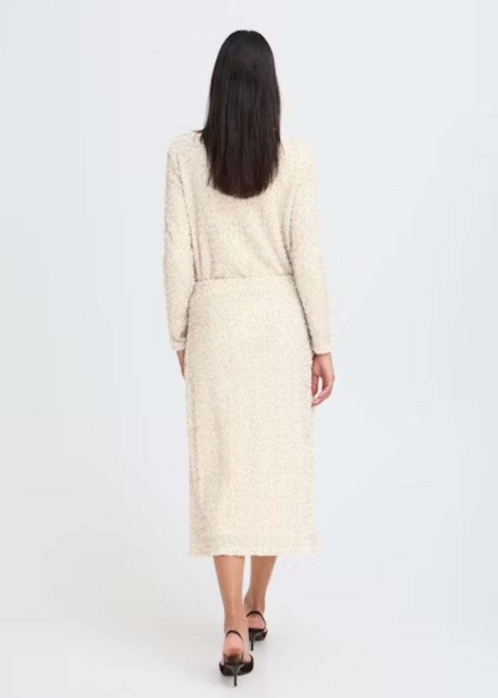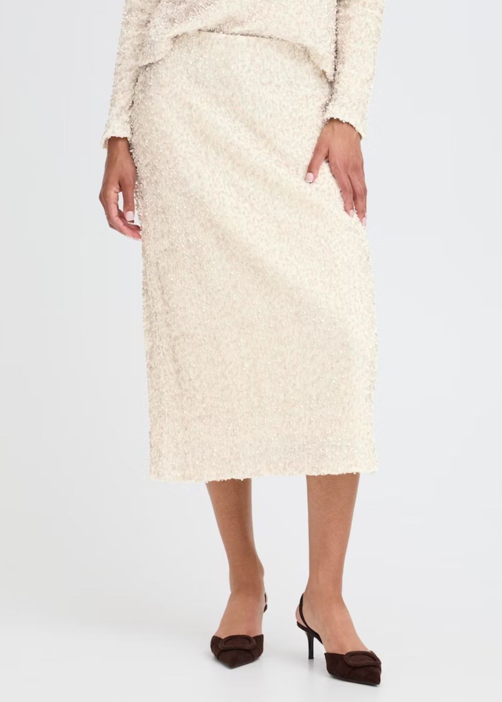 This midi pencil skirt offers a slim fit with elegant texture, perfect for elevating your wardrobe. The tailored silhouette and comfortable fabric make it ideal for both formal and versatile occasions.