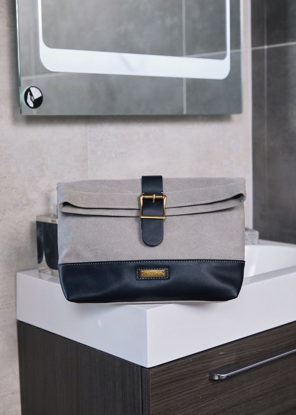 Keep your essentials organized and protected with this durable canvas roll top wash bag. The secure roll-top closure keeps contents safe during travel, while the sturdy canvas construction withstands daily wear. Perfect for bathroom storage, gym trips, or weekend getaways, this versatile bag combines practical functionality with understated style. Compact yet spacious, it's the reliable companion every traveler needs.