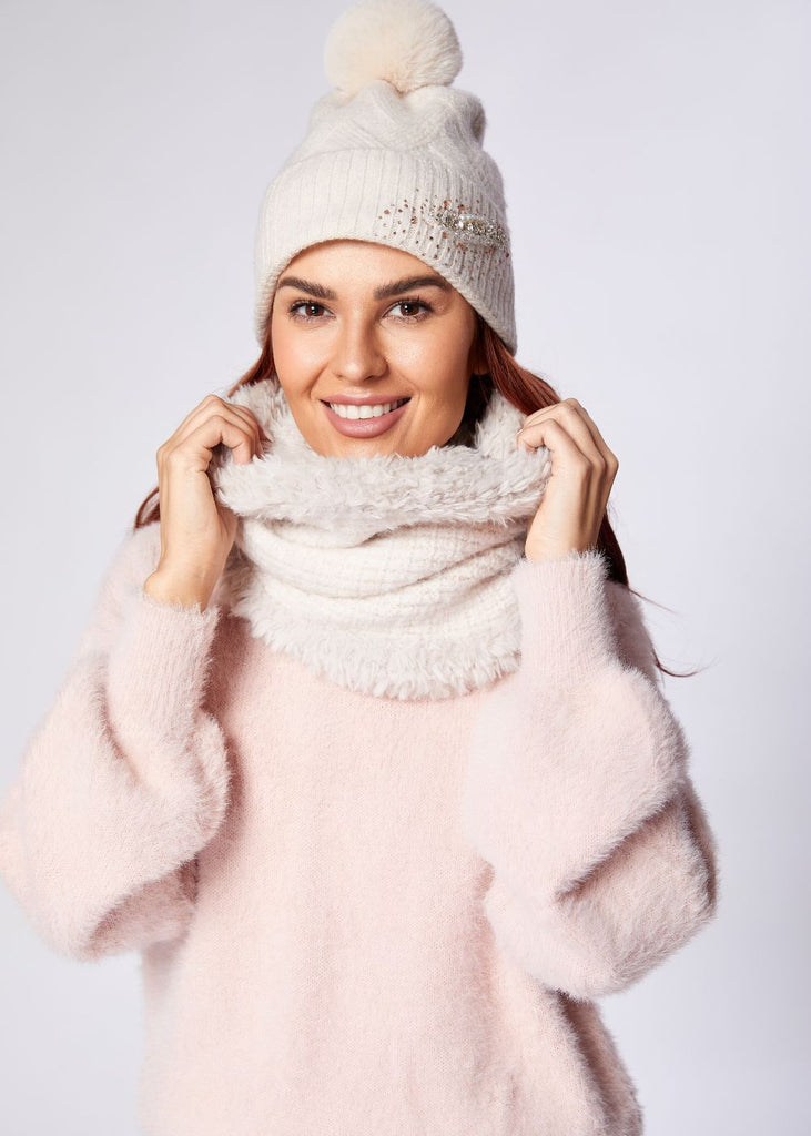 Elevate your winter wardrobe with this stunning two-piece set featuring a diamante-embellished knit hat that catches the light beautifully, paired with a versatile reversible snood. The sparkling details add glamour to everyday cold-weather styling, while the reversible snood offers two looks in one, giving you flexibility to match any outfit. Crafted for comfort and style, this set makes the perfect gift or personal indulgence for anyone who refuses to compromise on elegance during the colder months.