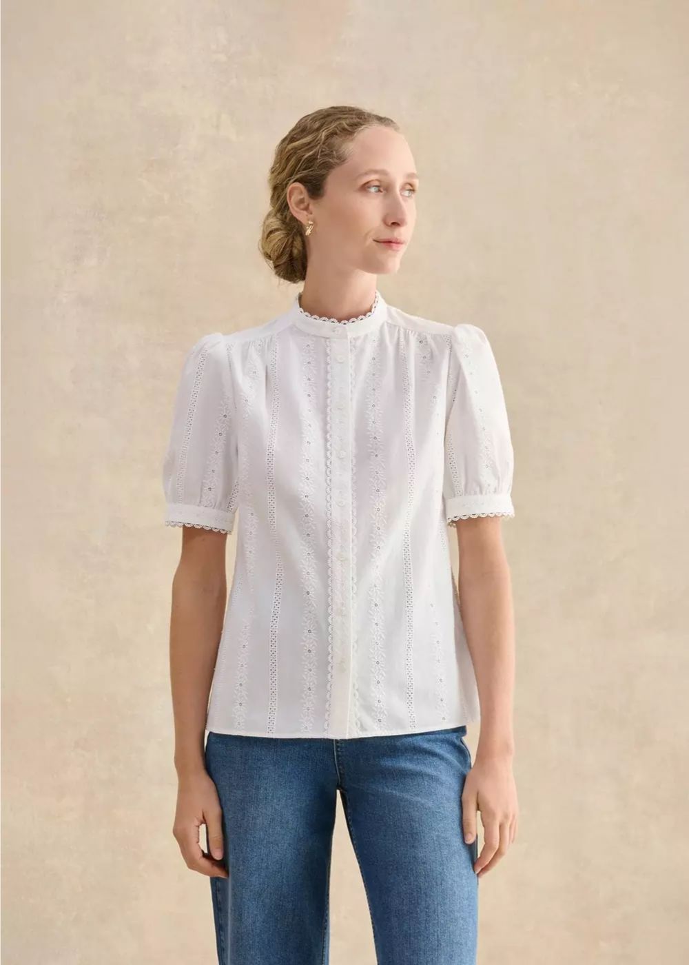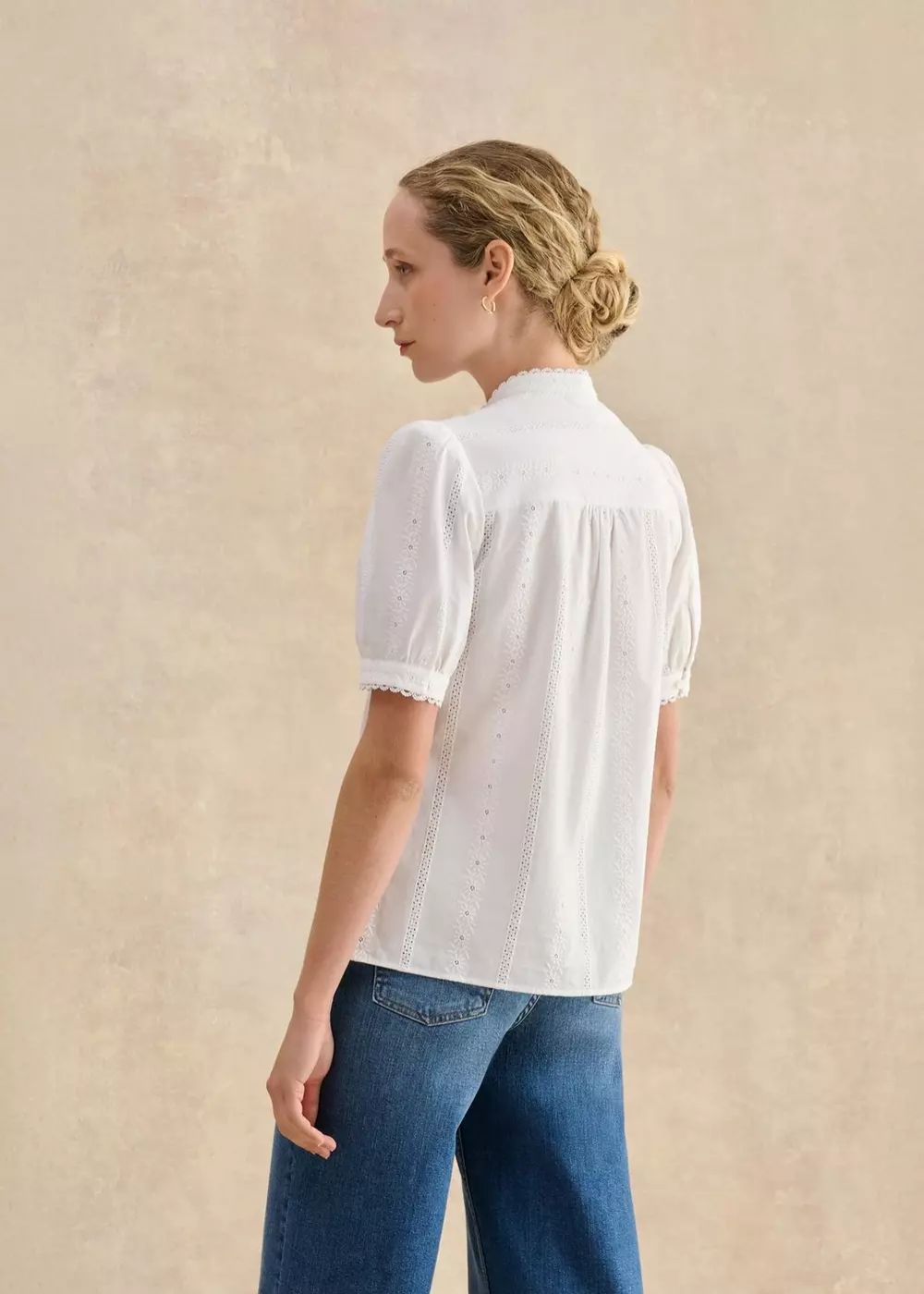 Elevated through intricate embroidery and cutwork, Sawyer is the ultimate white blouse for spring and summers to come.