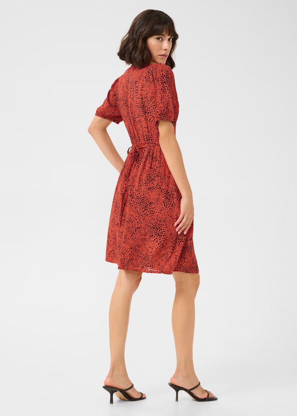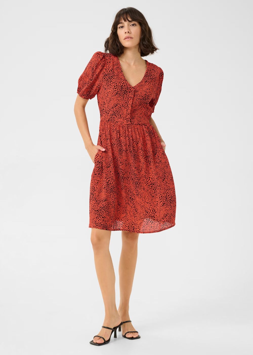 Unleash your bold and wild side with the KA Liana Short Dress! The vibrant grenadine graphic animal print adds a touch of excitement to this regular-fit dress. Made from 100% viscose, it features short sleeves and falls at a flattering mid thigh length. Embrace your individuality and stand out in this eye-catching dress!