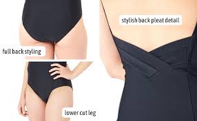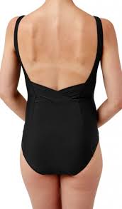 Classic style swimsuit with wide straps. Pleat detailing to V neck line at front and back, moulded removable cup inserts and elasticated under band. Fully lined. Three panel detail at front and back for great shaping.