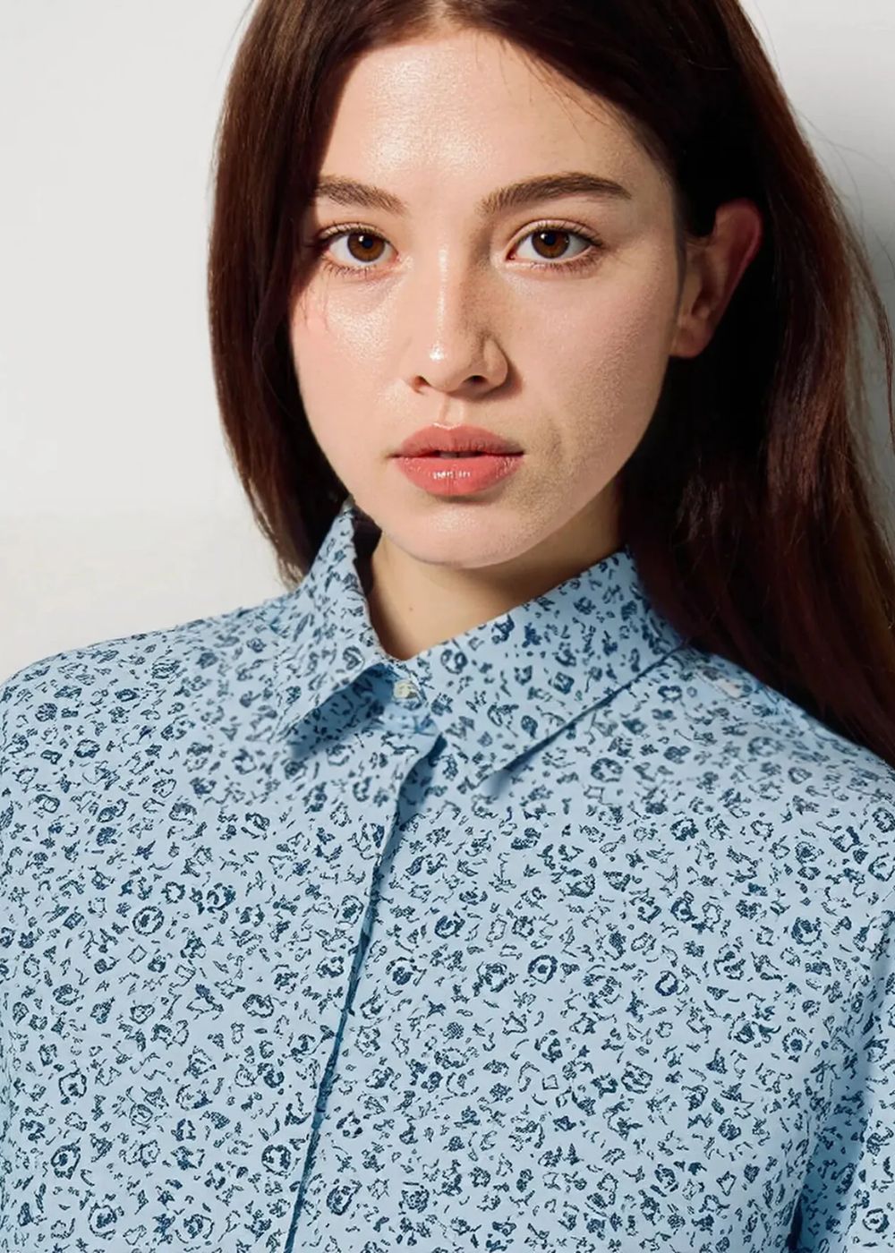 Long sleeve shirt in lightweight pure cotton fabric. Classic collar, front buttoning, patterned print all over. Comfortable and for everyday use, it lends itself to multiple occasions of use.