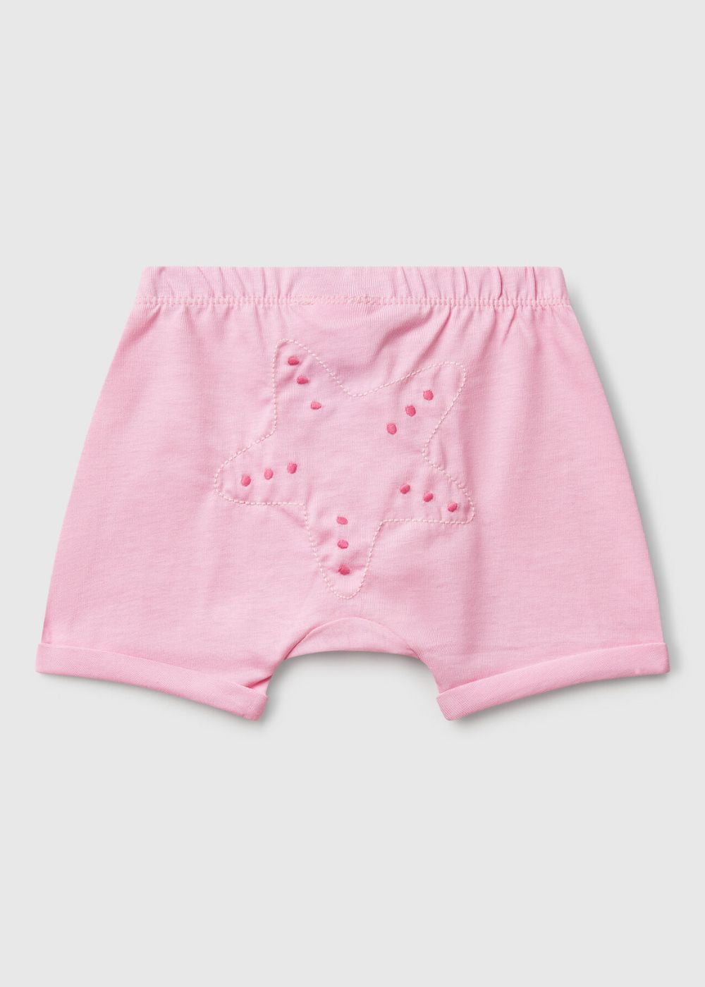 Shorts in pure organic cotton. Practical inner elastic at waist with decorative drawstring and maxi patch applique at back. Fun and gentle on the skin. Item made with fabric containing at least 95% organic cotton.