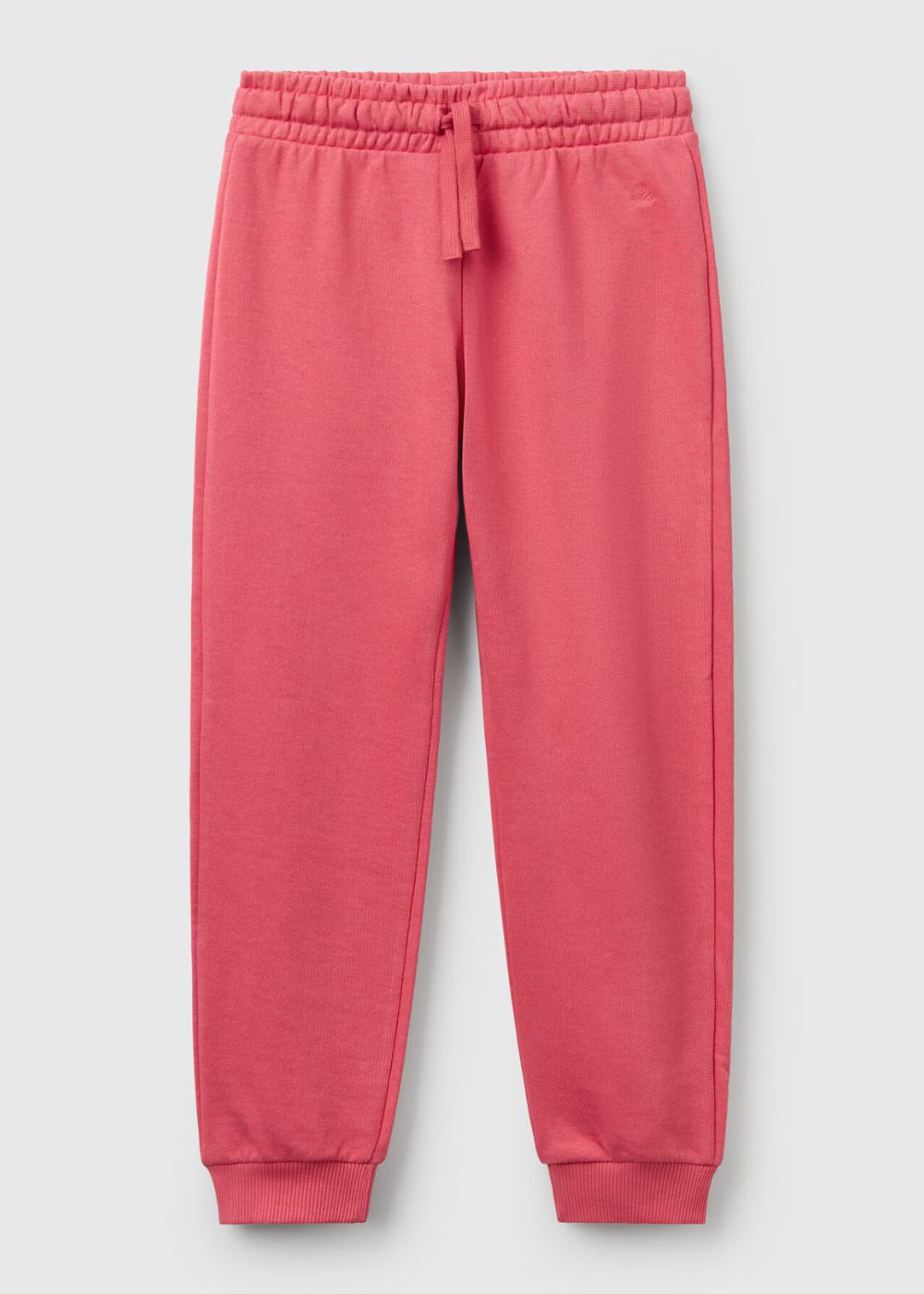 Joggers in pure cotton sweat with a firm but lightweight feel. Straight leg, waist with inner elastic and drawstring, small logo embroidered on the left side. Relaxed fit and maximum comfort, for those who love to move around in freedom.