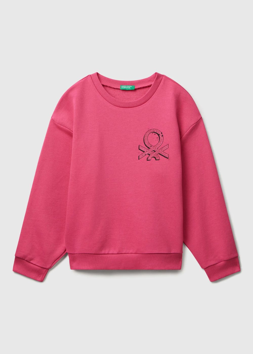 Long sleeve sweatshirt in pure cotton with consistent yet light feel. Round neck and glittery logo print on the front. Practical and everyday, perfect as an extra layer.