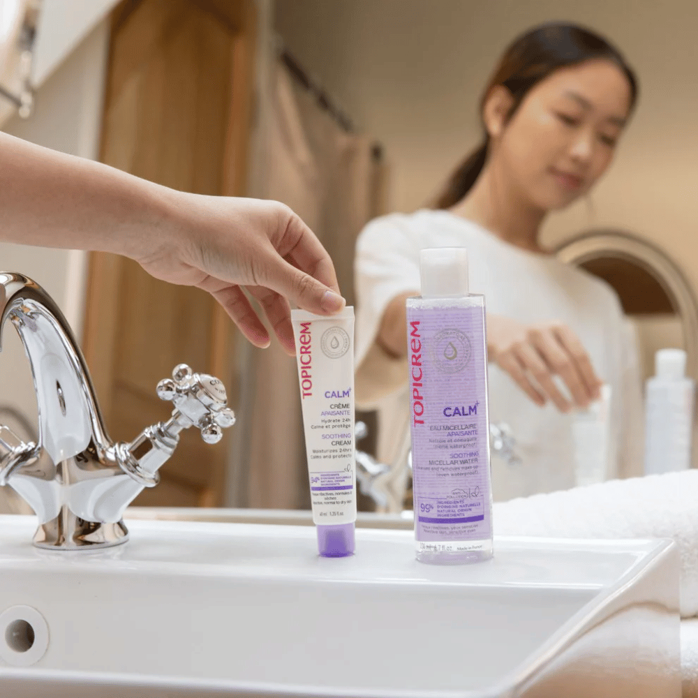 The formula of our CALM+ Soothing Cream is perfectly suited to reactive skin . Its texture is light and melting. Fragrance and coloring free.
