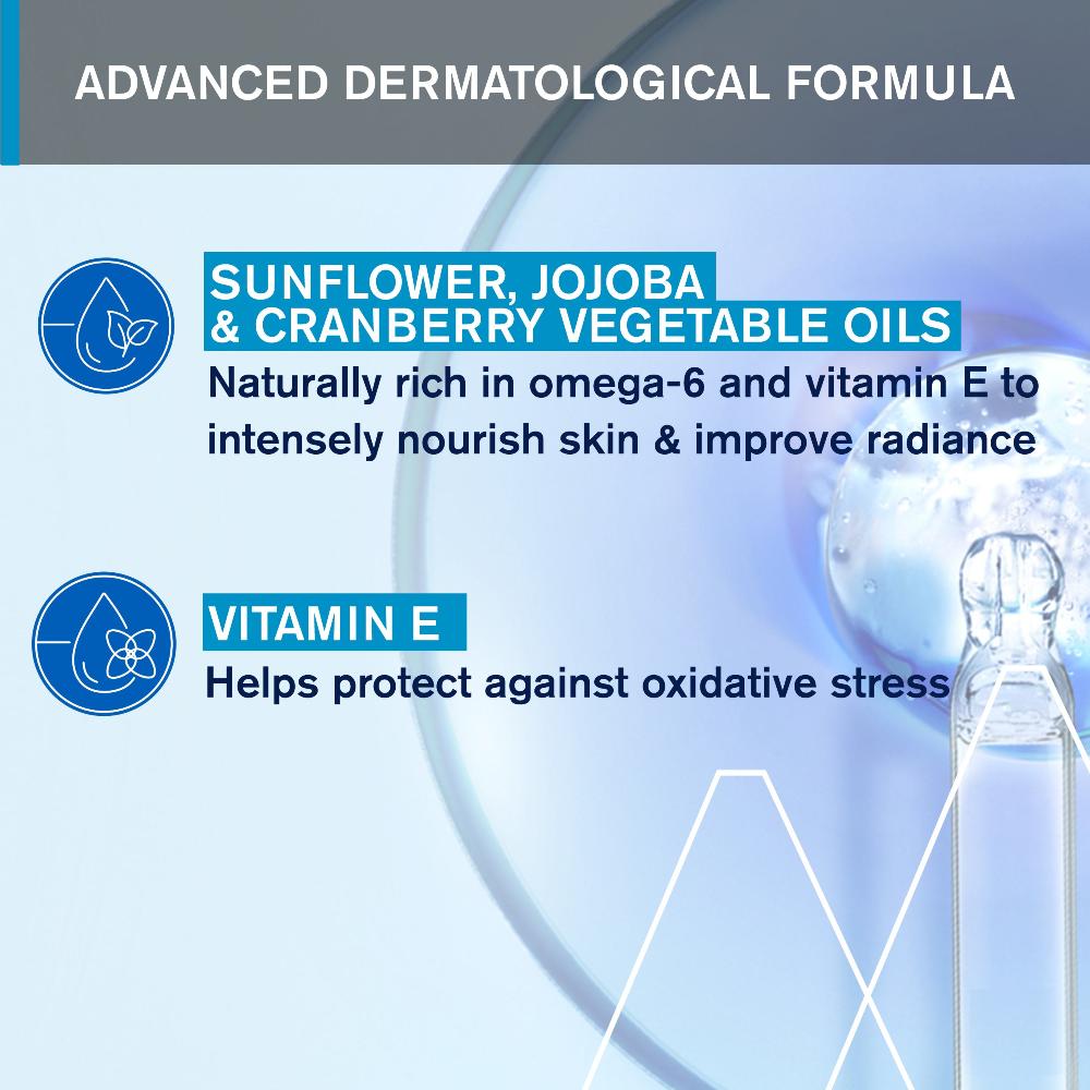 Enriched with Sunflower, Jojoba and Cranberry vegetable oils – known for their emollient and nourishing properties, this oil moisturizes and protects the skin from drying out.