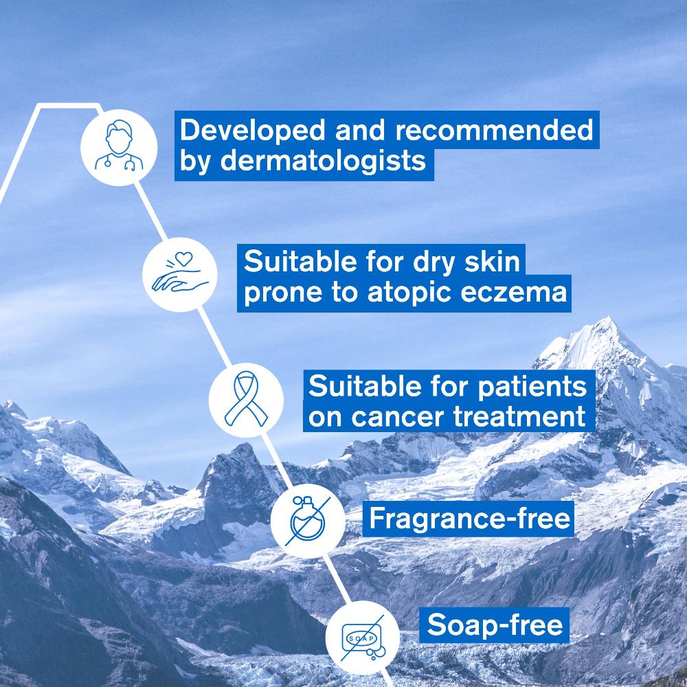 Specific super fatting agents associated with the patented Cerasterol-2F complex protect from the drying effect of water while restoring skin comfort.