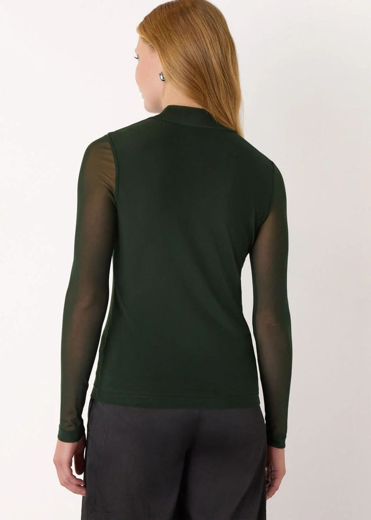 Our High Neck Mesh Top is a festive wardrobe essential. Crafted in a rich dark green, it features a slim fit with a high neckline, fully lined body and subtly sheer mesh sleeves. Effortlessly versatile, it pairs beautifully with tailored trousers, a skirt or your favourite jeans for a casual look.