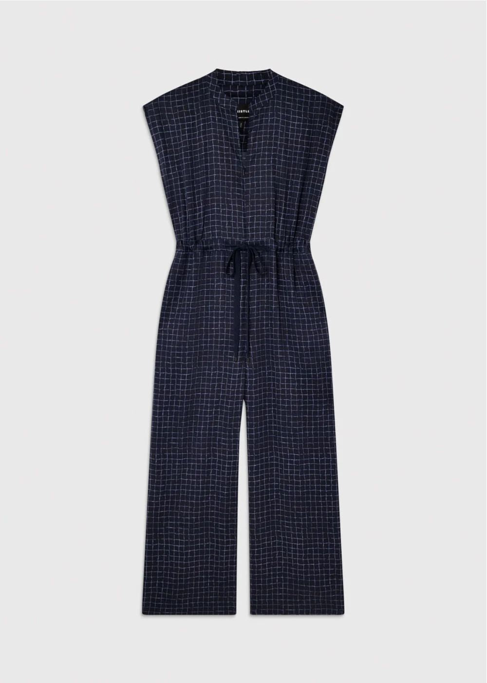 Made for easy, everyday wear, our Grid Print Sleeveless Jumpsuit is perfect for laid-back plans. In a blue shade, it comes with a subtle grid print, a sleeveless design, and an adjustable drawstring waist for a comfortable, flattering fit. Modern, it’s a timeless piece to elevate your spring–summer wardrobe.