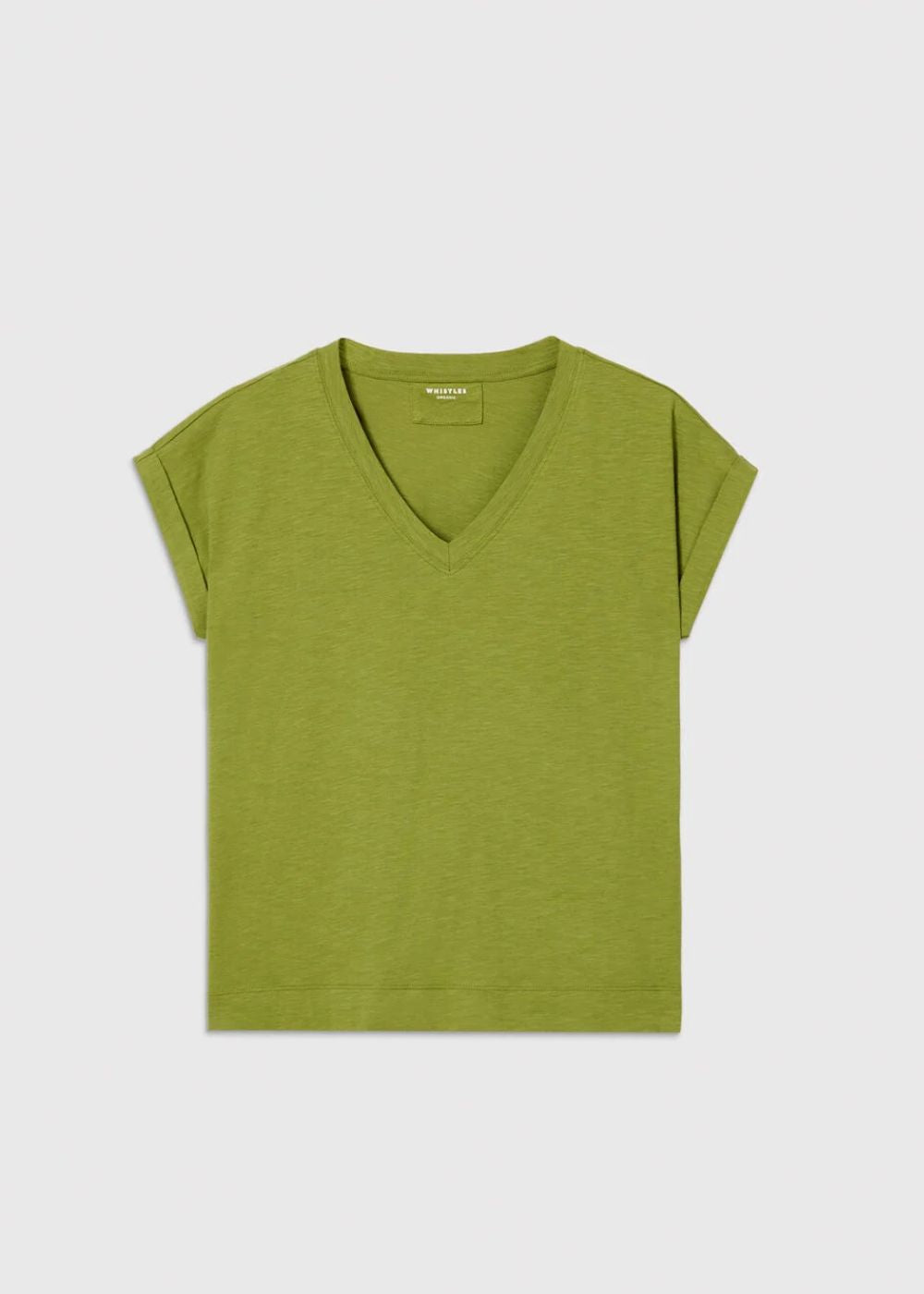 No wardrobe can have too many tees and the Willa is an easy wardrobe staple that you'll wear again and again. It’s crafted from soft, comfortable cotton in a shade of green, complemented with its relaxed fit, upturned cap sleeves and timeless V-neck collar.