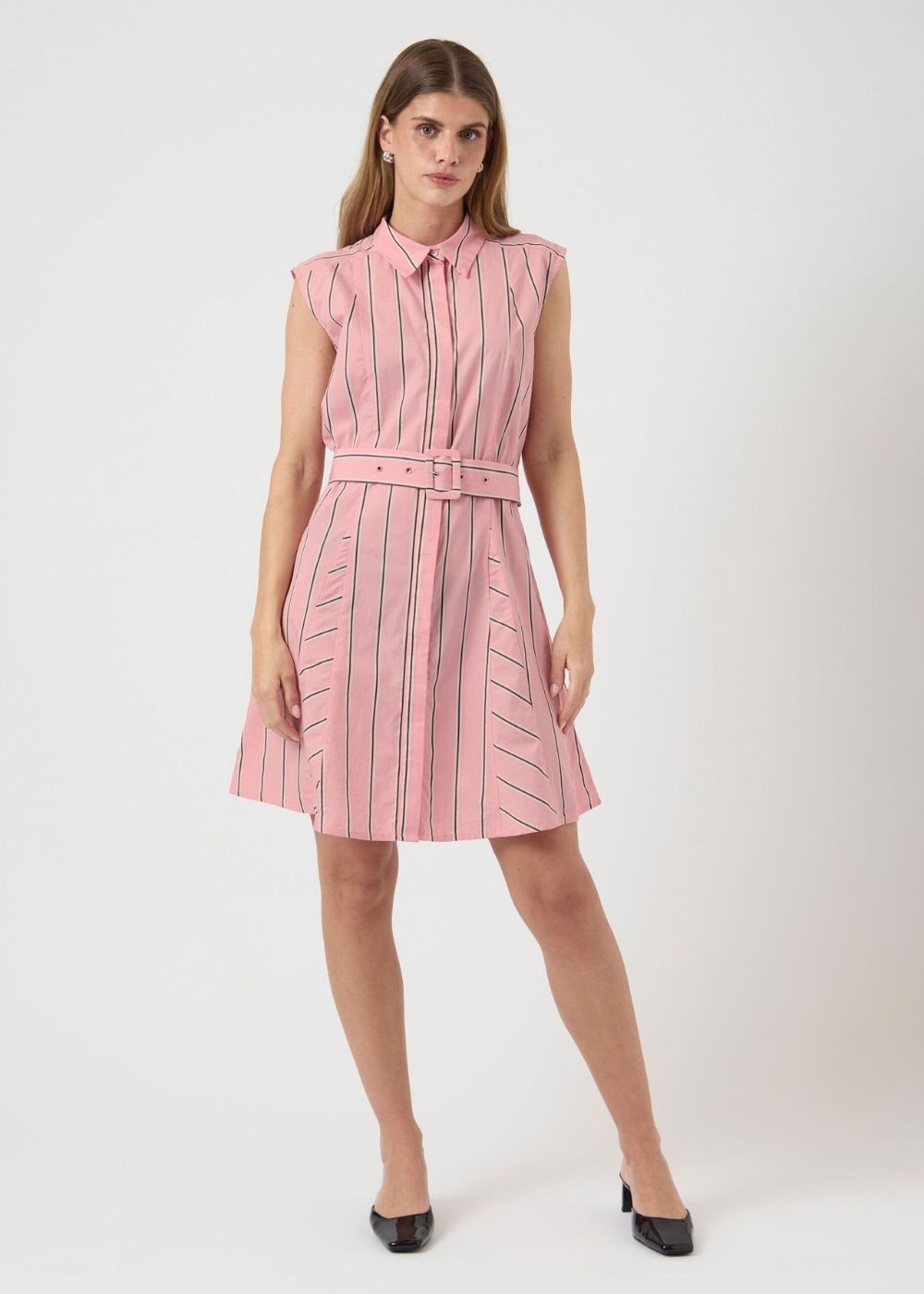 Introducing the Yasmivu SL Shirt Dress, the epitome of elegance and sophistication. Crafted from 100% cotton, this sleeveless dress features a classic shirt collar and a flattering short length. Complete with a waist belt, its regular fit ensures a sleek silhouette. Elevate your wardrobe with this luxurious and versatile piece.